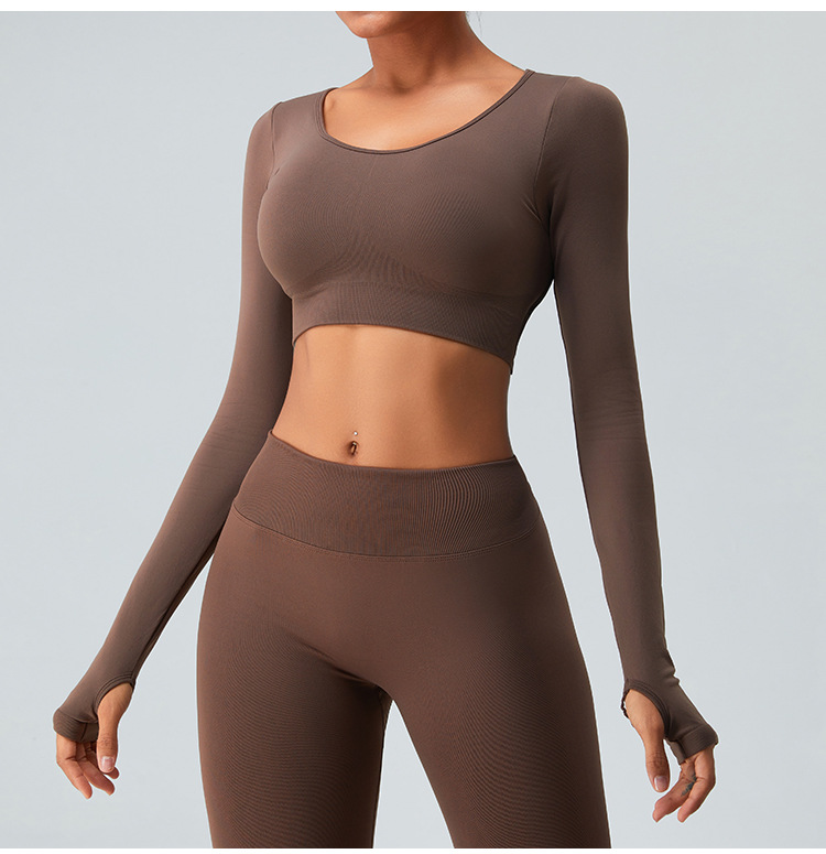 새로운 유럽과 미국의 빠른 건조 원활한 긴 소매 요가 세트 여자의 크로스 백 요가 최고 실행 스포츠 피트니스 세트스토어 가기