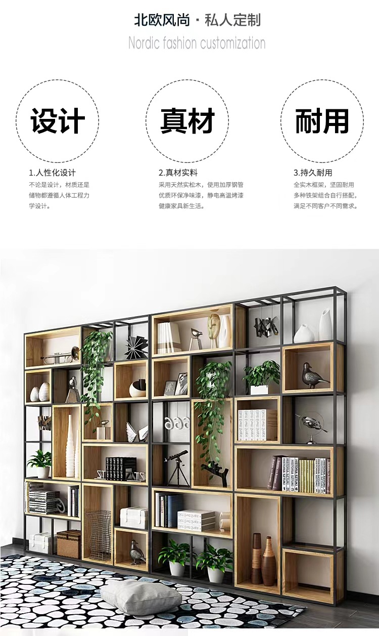 단철 파티션 랙 사무실 화면 현대 단단한 나무 책장 바닥 디스플레이 랙 산업 스타일 스토리지 랙스토어 가기