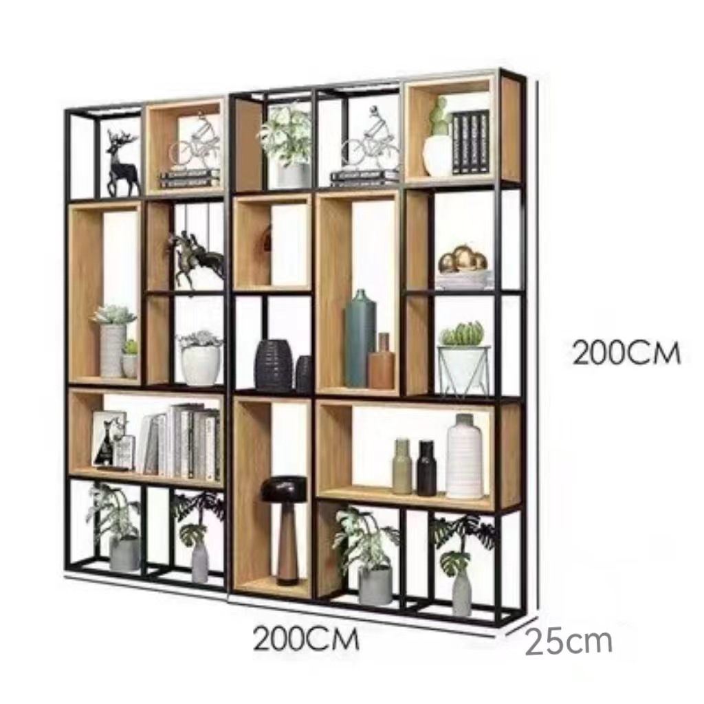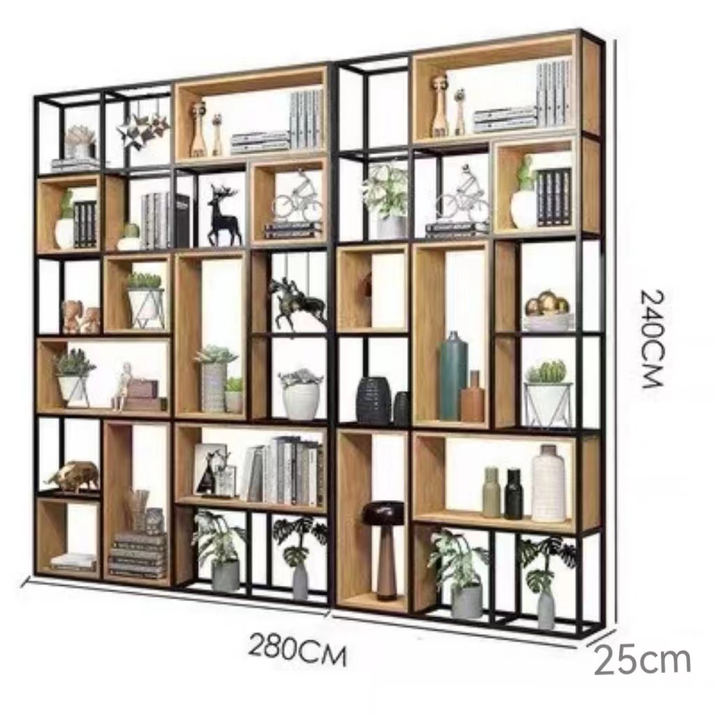 단철 파티션 랙 사무실 화면 현대 단단한 나무 책장 바닥 디스플레이 랙 산업 스타일 스토리지 랙