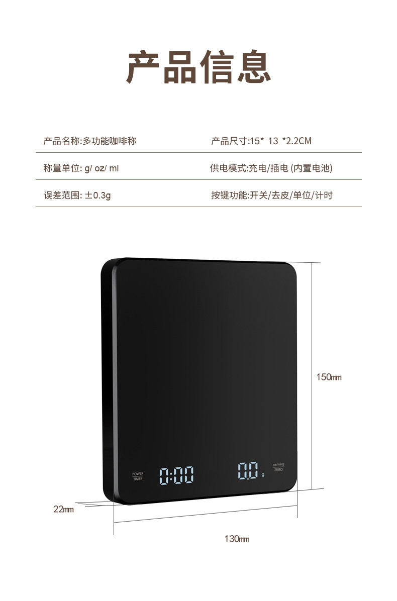 핸드 커피 전자 저울 계량 가정용 주방 전자 저울 고정밀도 미니 상업용 그램 저울 크로노그래프 충전 저울