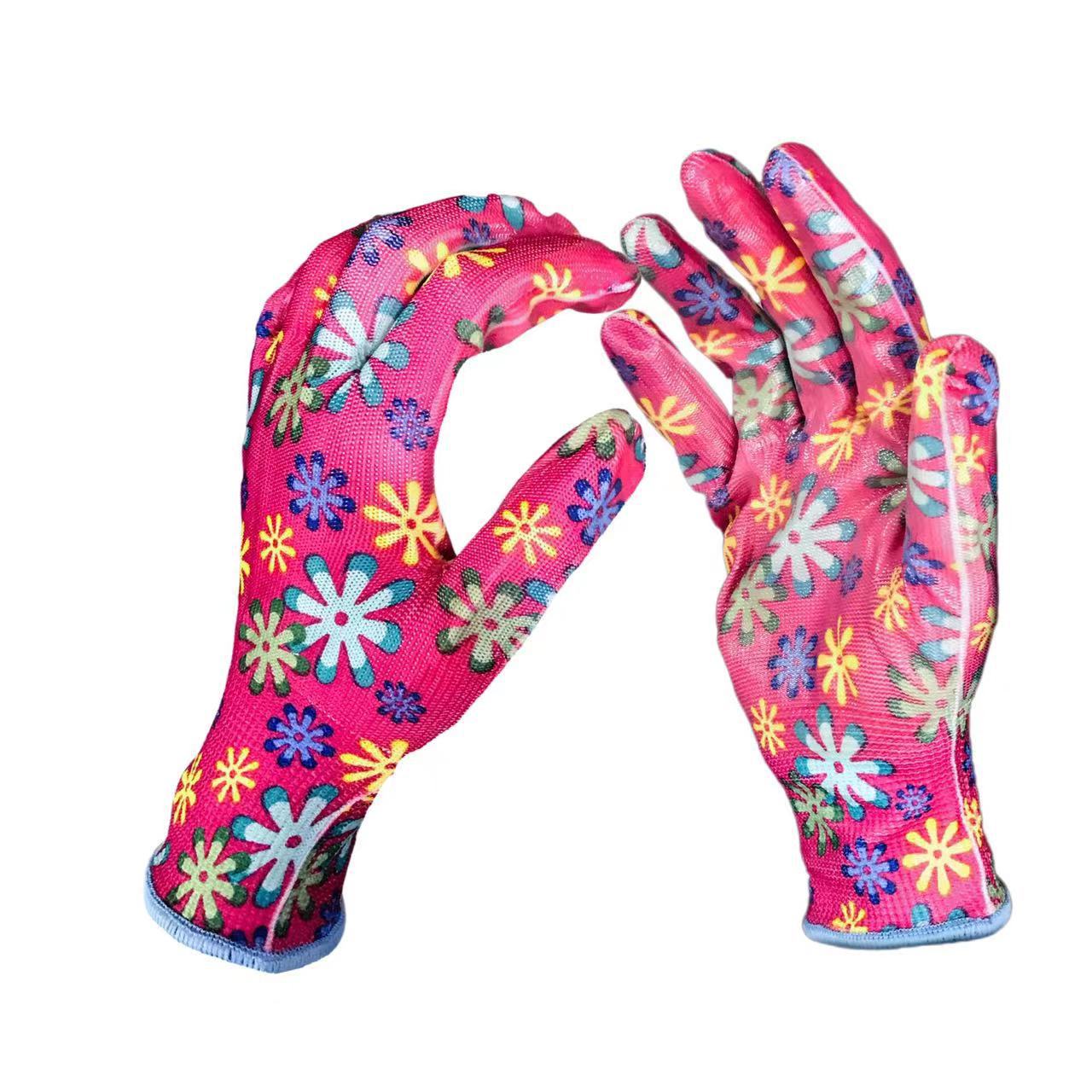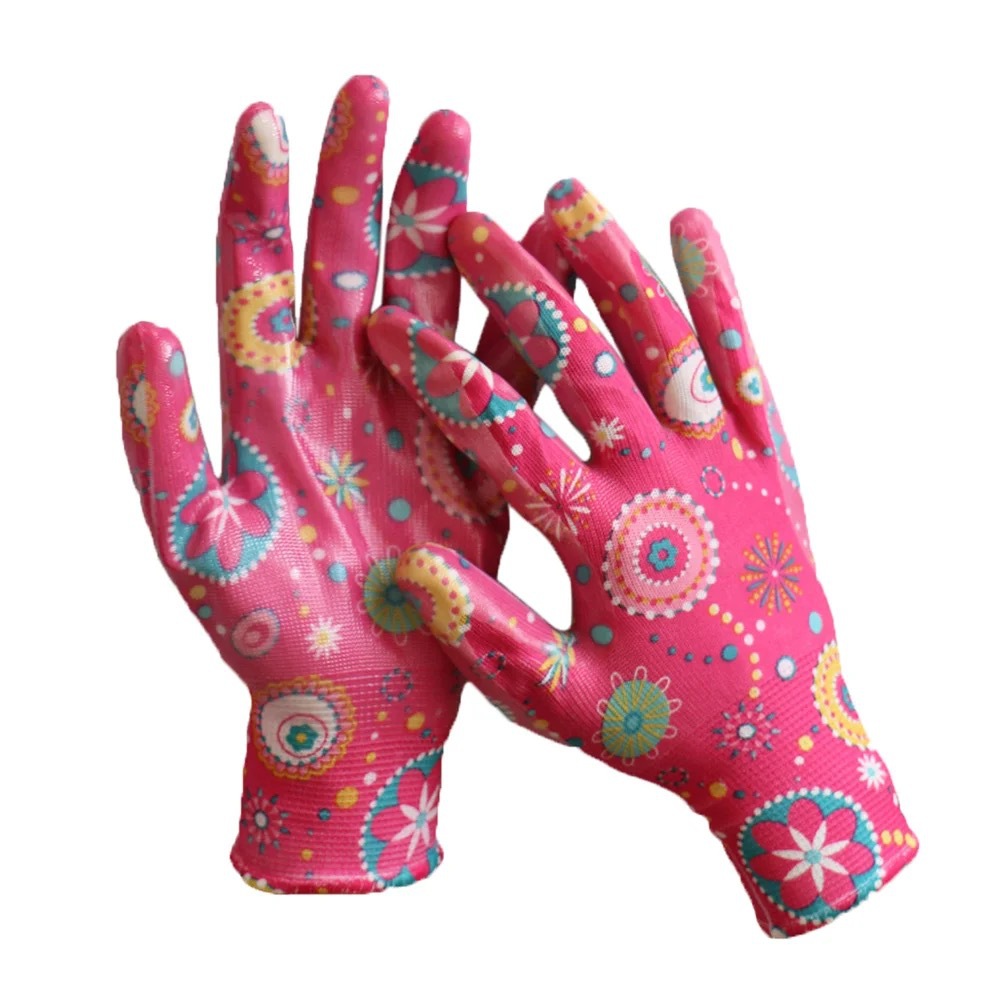 니트릴 딩 청 인쇄 정원 장갑 심기 보호 색상 니트릴 딥 접착제 정원 작업 장갑 도매