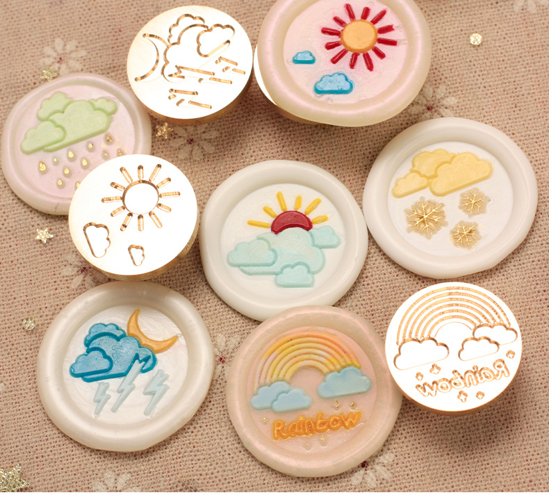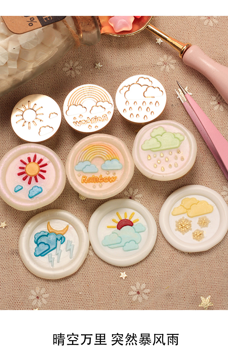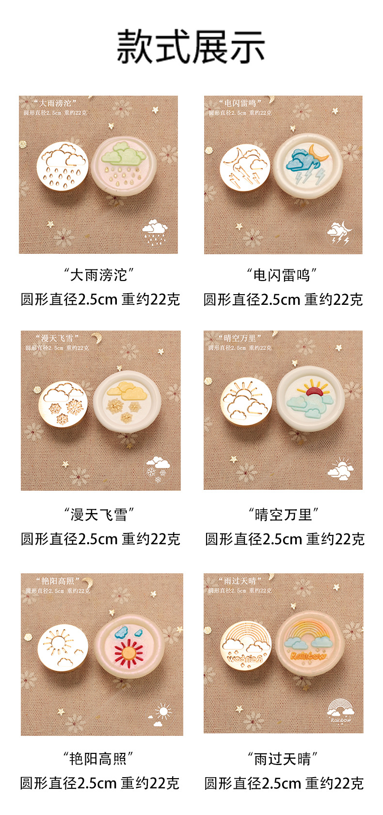 날씨 시리즈 맑은 비의 날 화재 페인트 씰 라운드 씰 싱글 헤드 2.5cm 화재 페인트 씰 손 계정 장식스토어 가기
