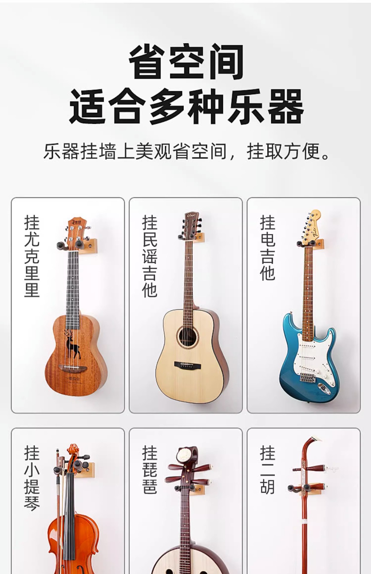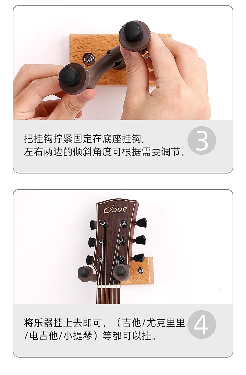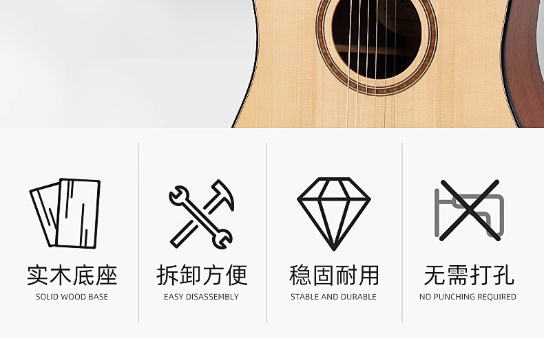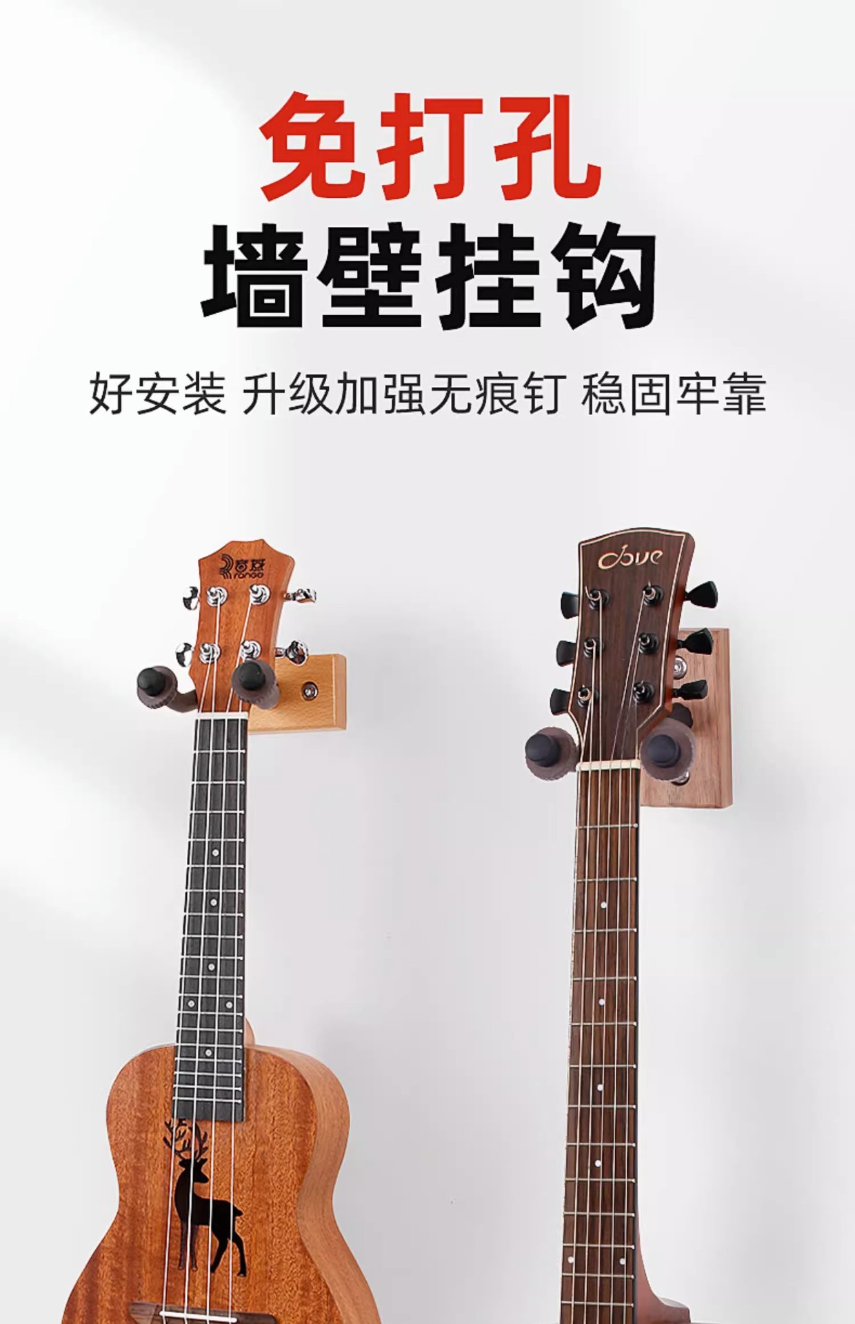 기타 랙 우쿨렐레 랙 펀치 프리 후크 벽 나무 랙 가정용 수직 브래킷 보관 스탠드