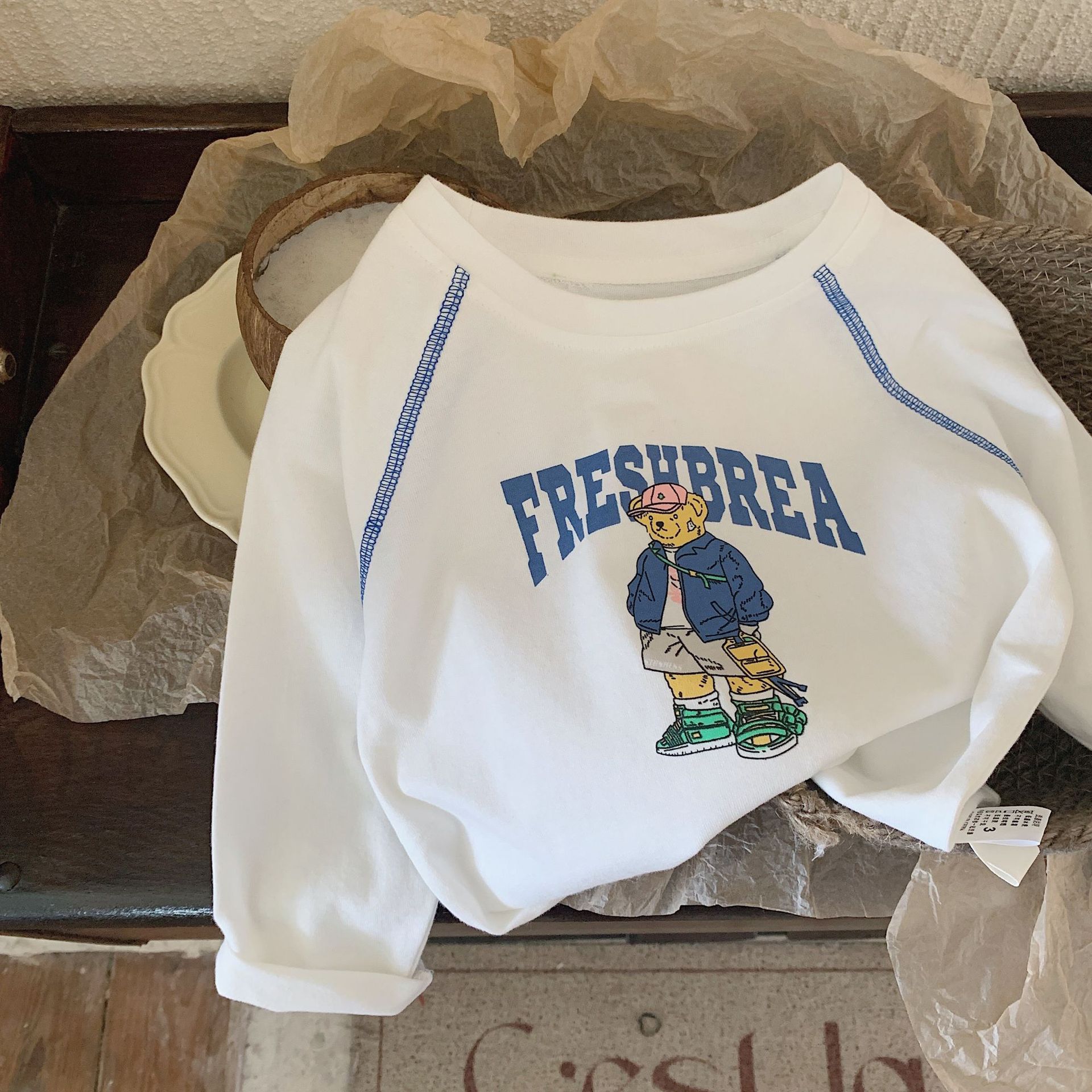 어린이 티셔츠 2025 Bangcheng 가을 스타일 소년과 소녀 한국 만화 곰 긴팔 티셔츠 Bottoming Tops 트렌디 F0237스토어 가기