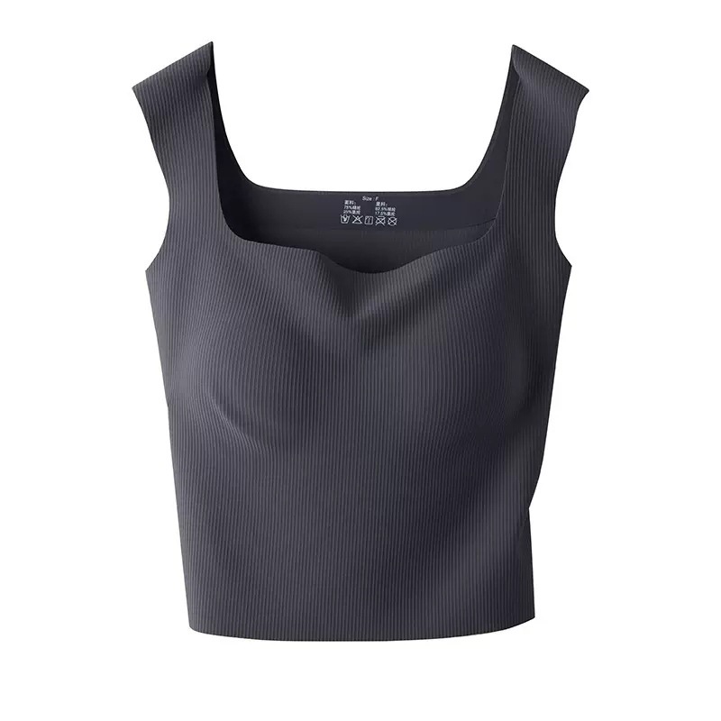 가슴 패드가있는 새로운 스타일 스퀘어 칼라 분리형 캐미솔 조끼 여성용 여름 스레드 니트 짧은 바닥 겉옷 아름다운 등스토어 가기