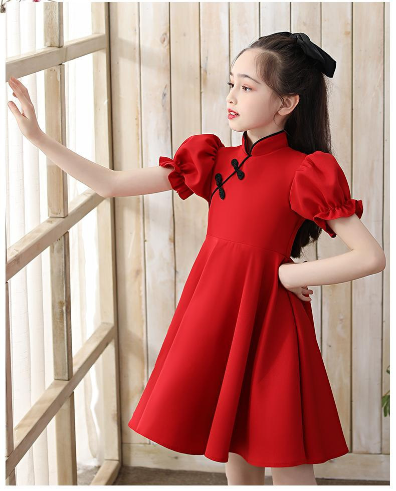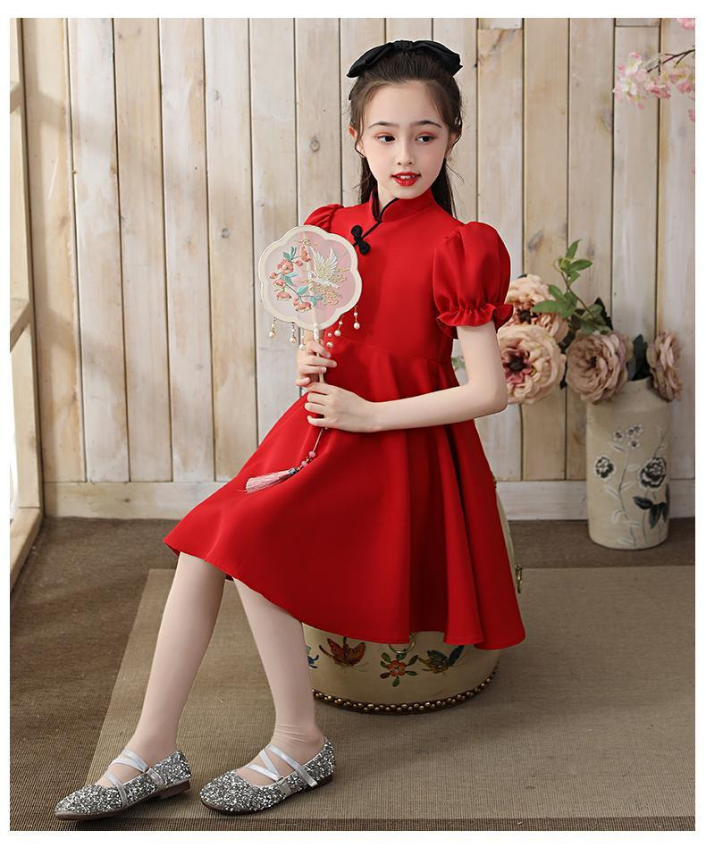 소녀 여름 치파오 스커트 2023 새로운 어린이 여름 원피스 소녀 세련된 큰 어린이 공주 원피스스토어 가기