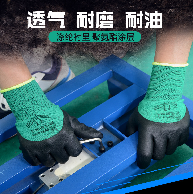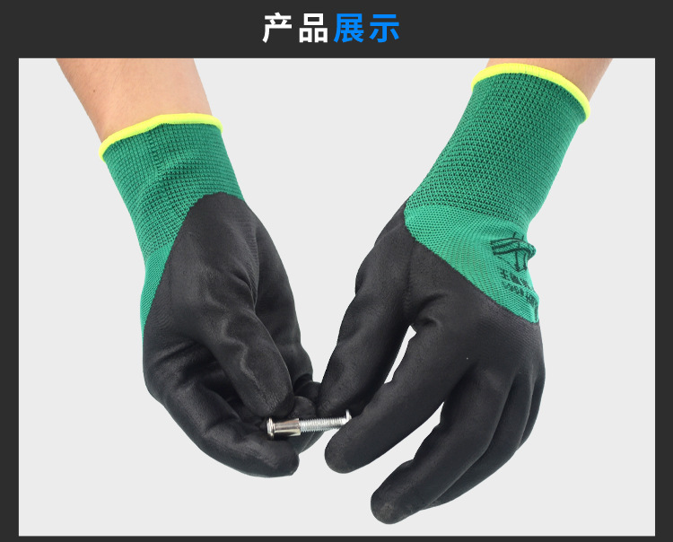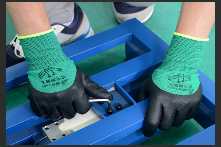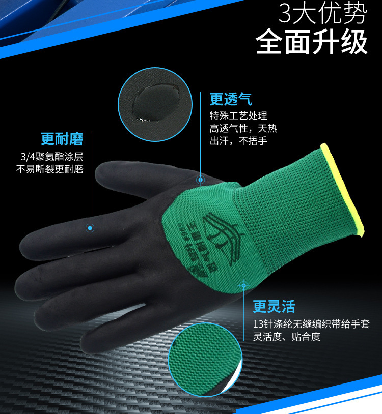 Dengsheng 노동 보호 장갑은 단단히 나일론 반 침지 강화 프로스트 새 969 내마모성 미끄럼 방지 니트릴을 담근다