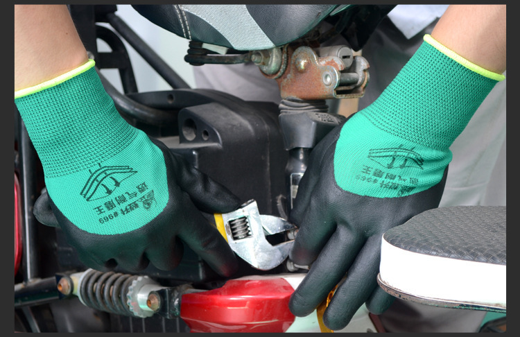 Dengsheng 노동 보호 장갑은 단단히 나일론 반 침지 강화 프로스트 새 969 내마모성 미끄럼 방지 니트릴을 담근다스토어 가기