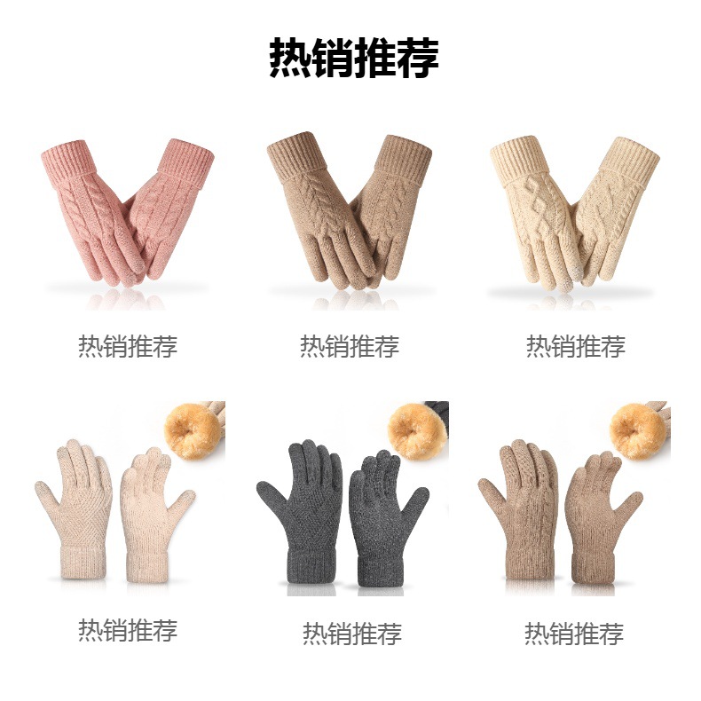 새로운 여성용 터치스크린 장갑, 두꺼운 니트로 따뜻함을 유지하고, 방한, 심플한 플러시 모직, 터치스크린을 보호할 수 있음