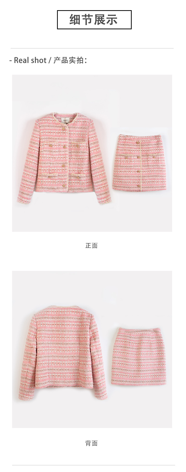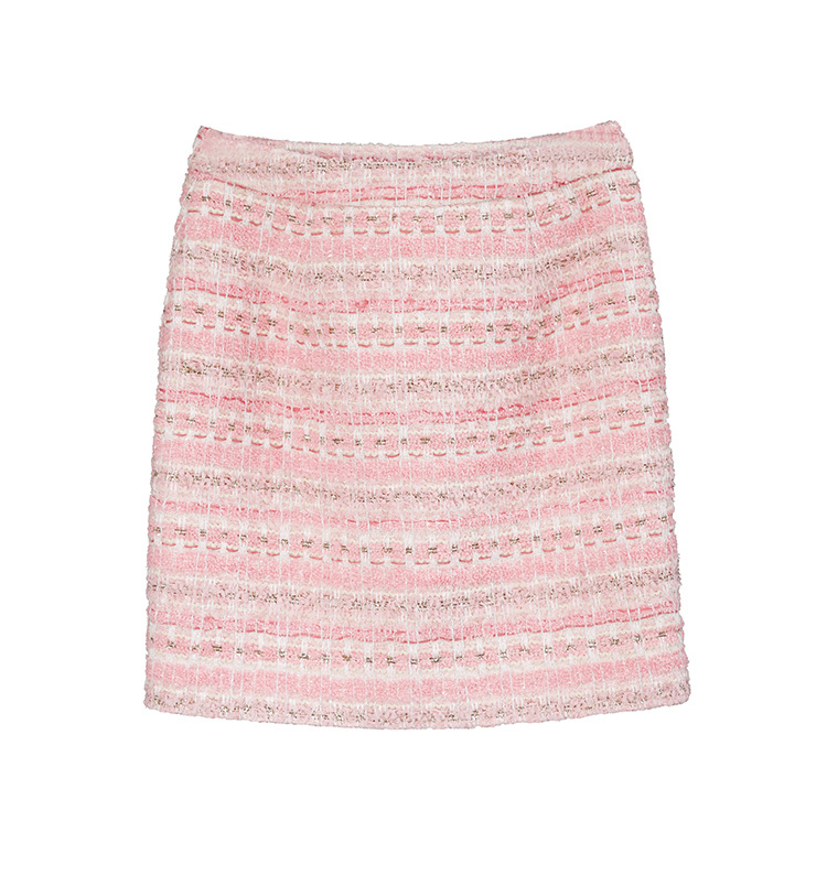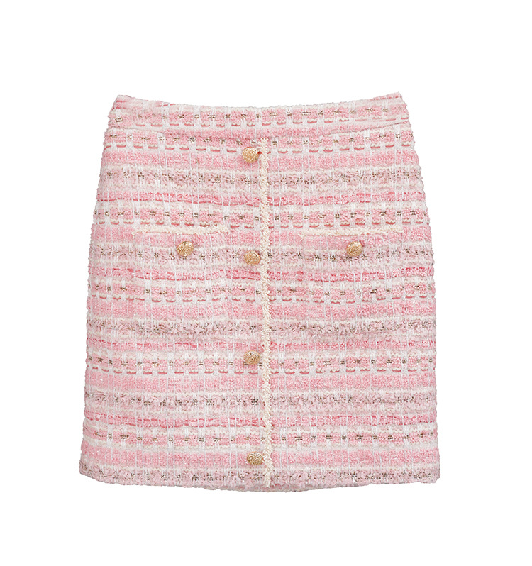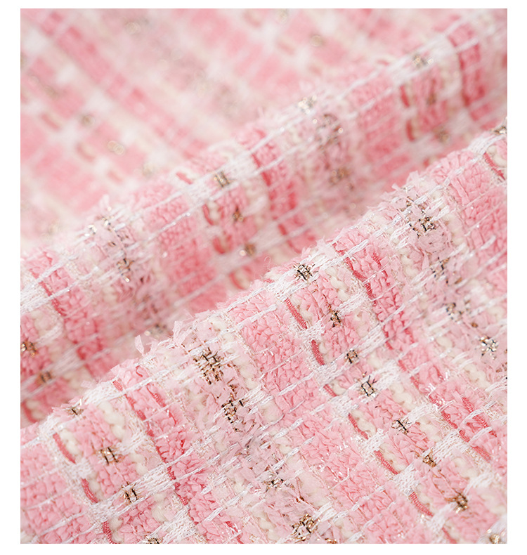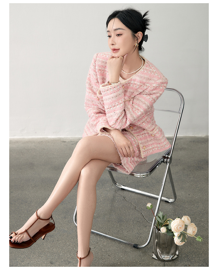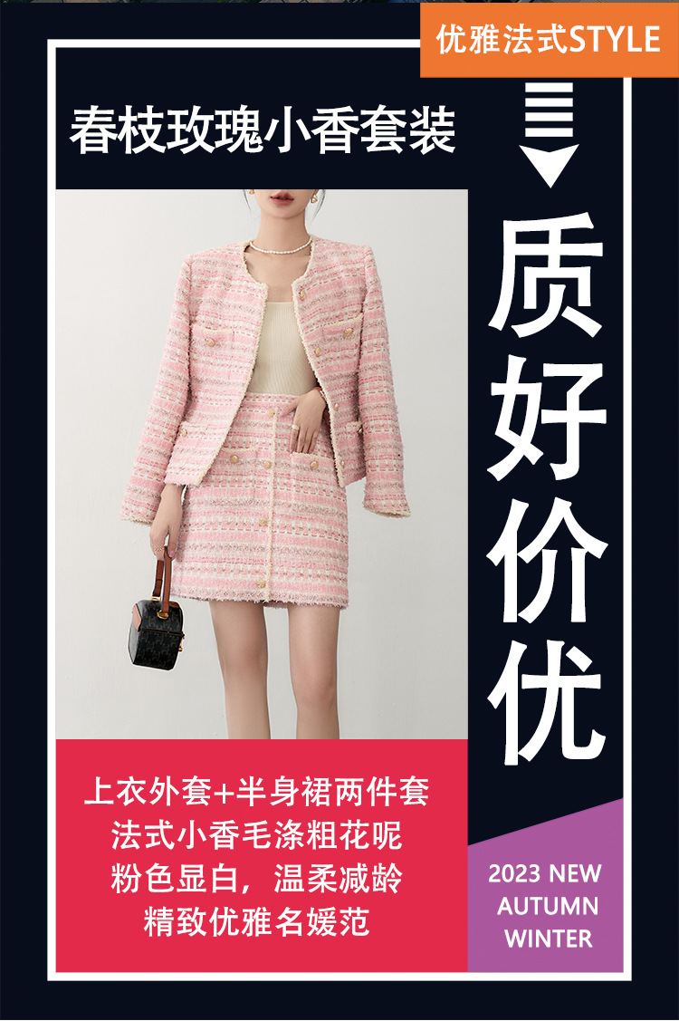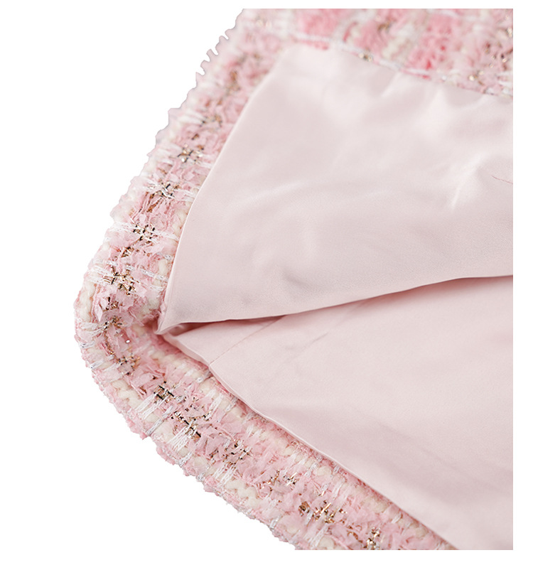 안페오나 봄 가을 신상 프렌치 스타일 모헤어 폴리에스터 트위드 핑크 화이트닝 상의와 스커트 여성 세트 패셔너블스토어 가기