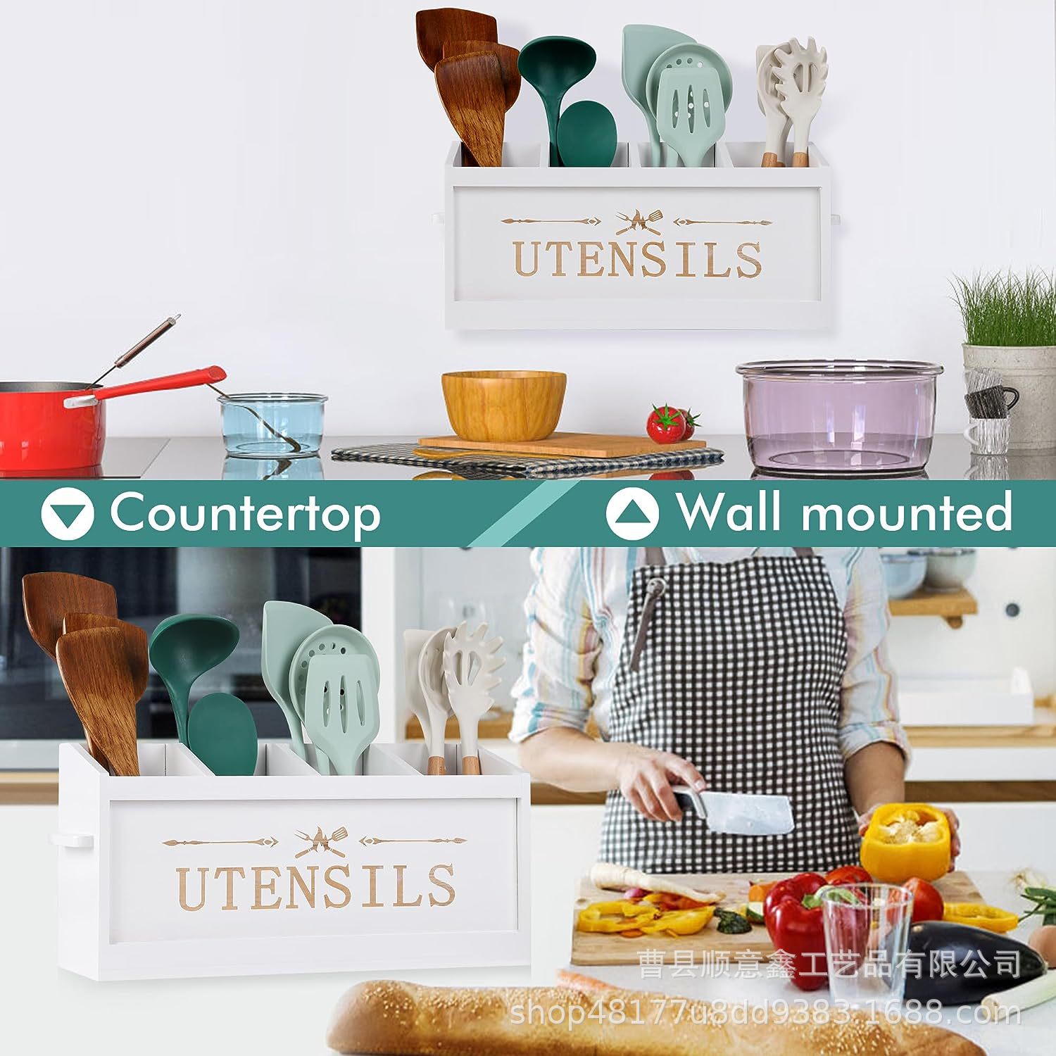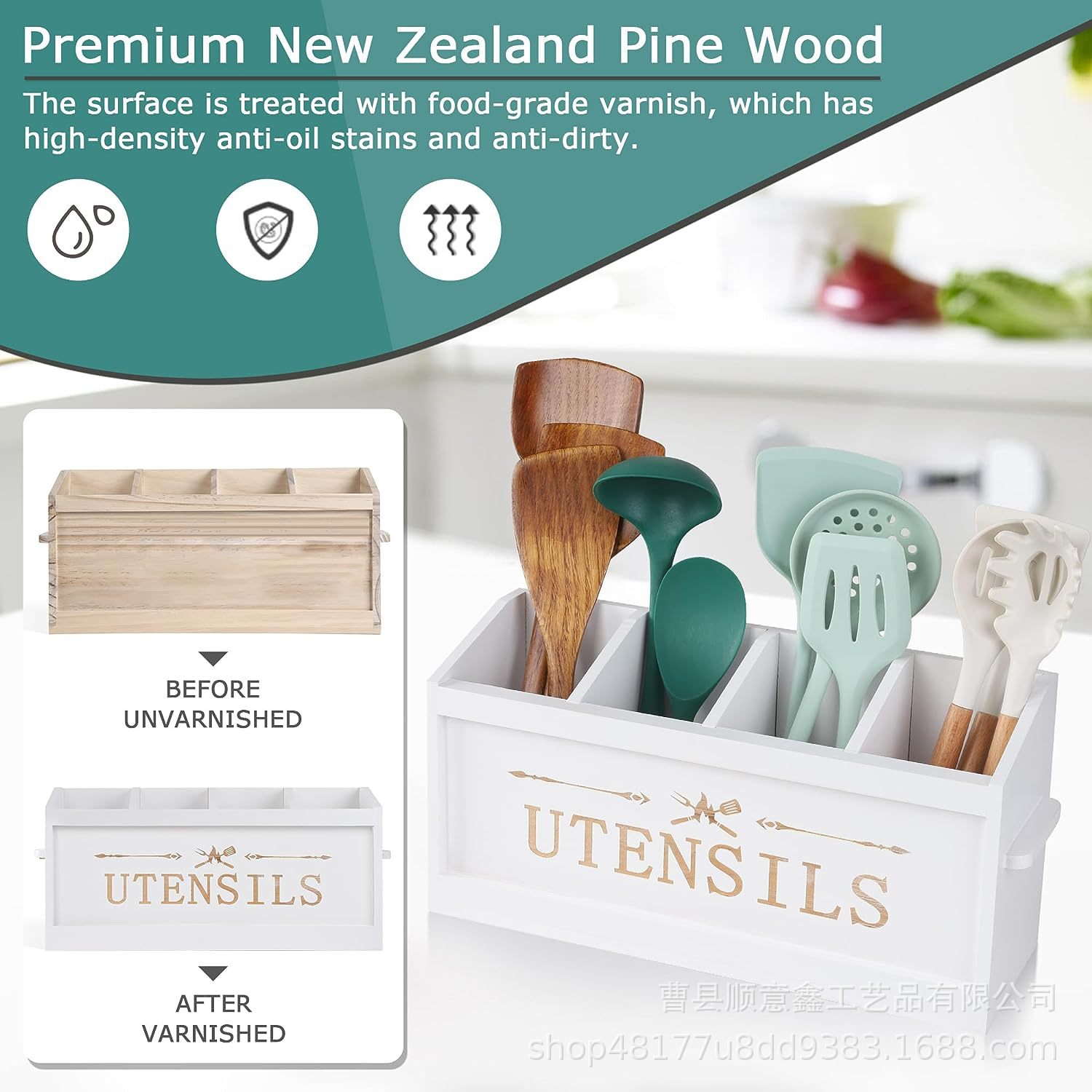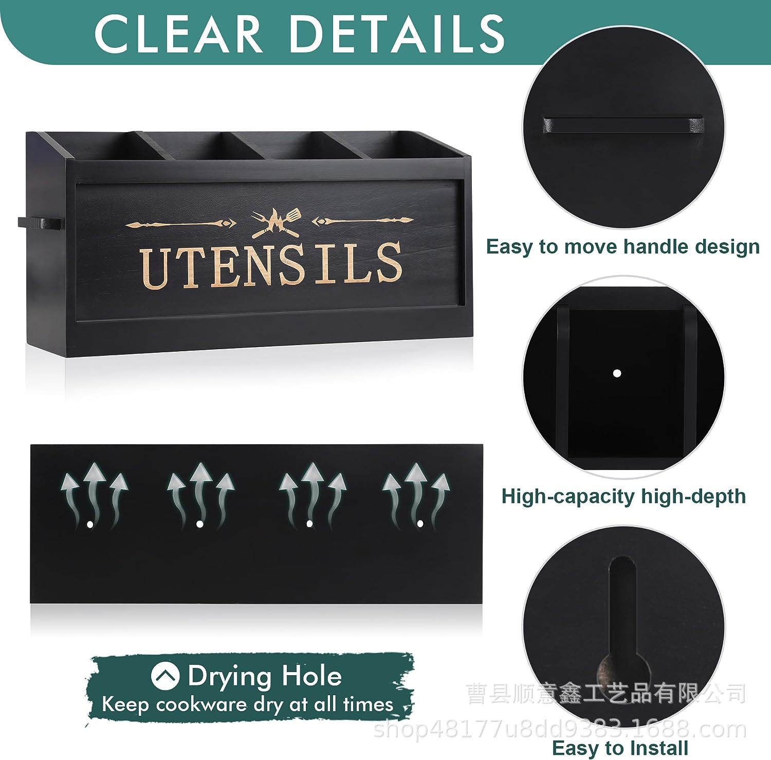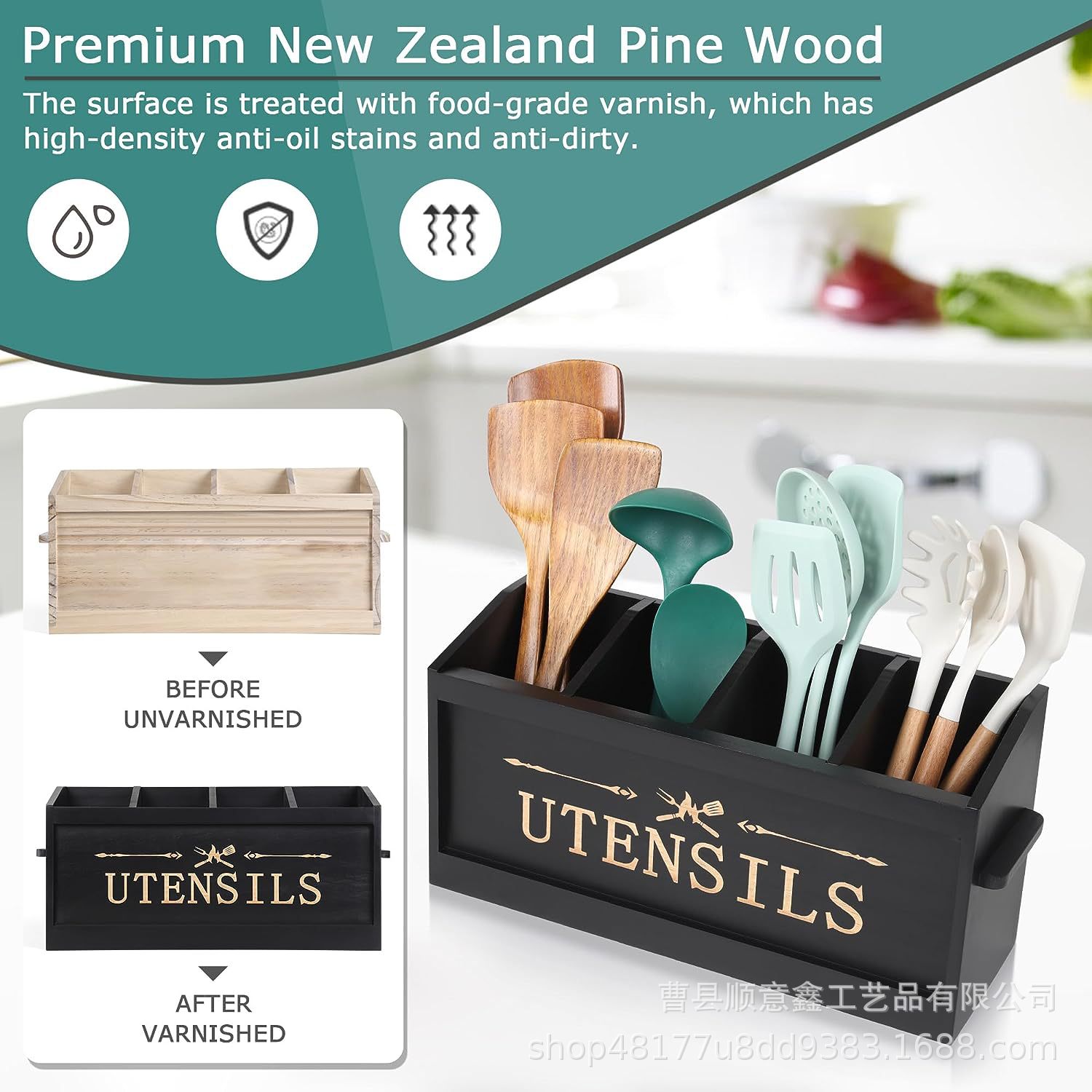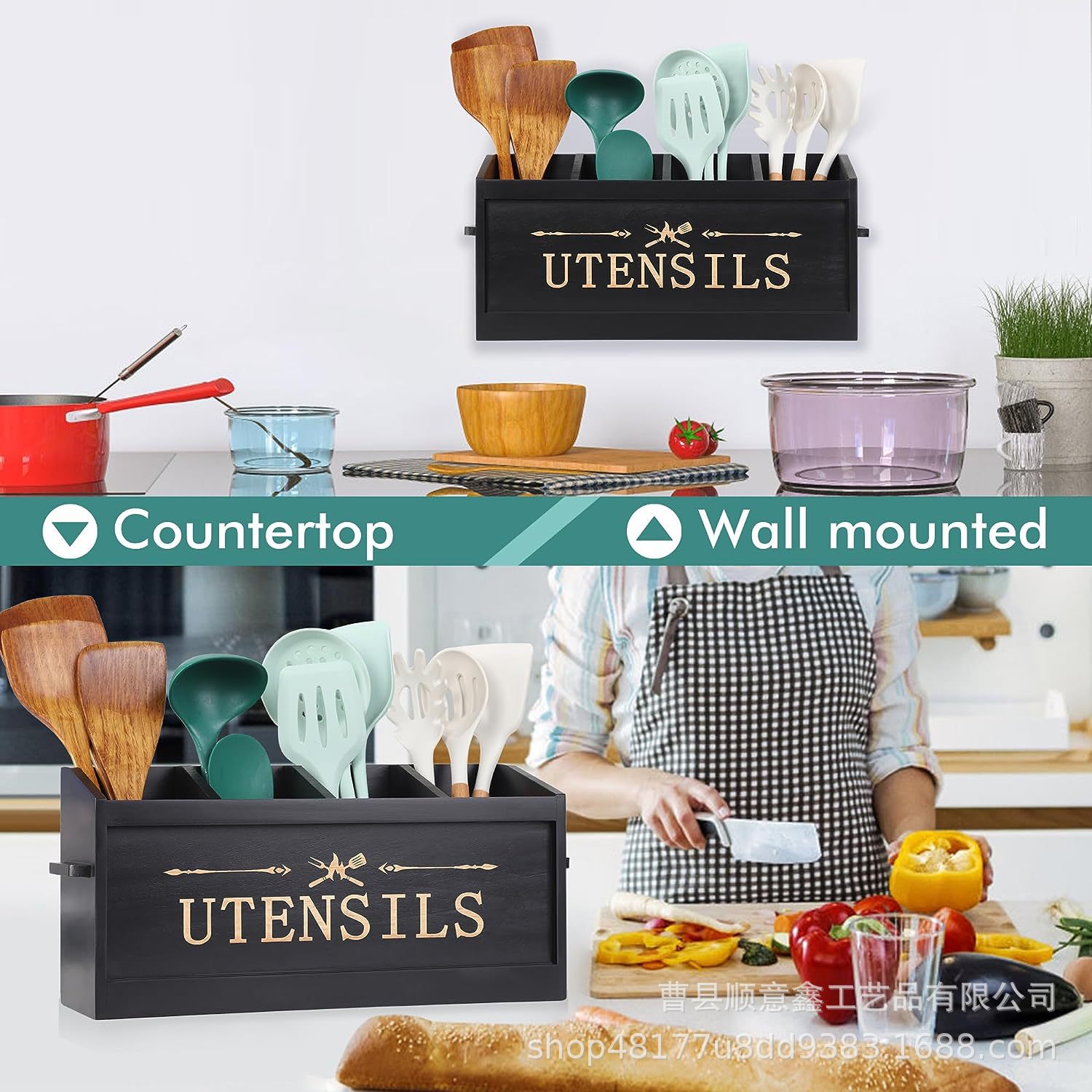 주방 나무 칼 및 포크 보관 상자 나무 식기 보관 랙 나무 요리 도구 보관 상자 카운터 도구 랙스토어 가기