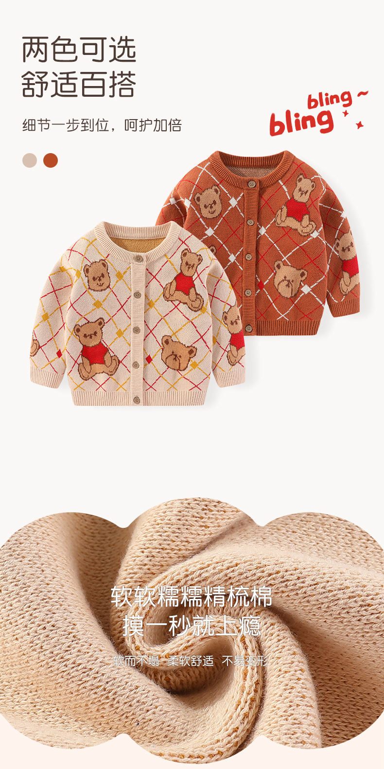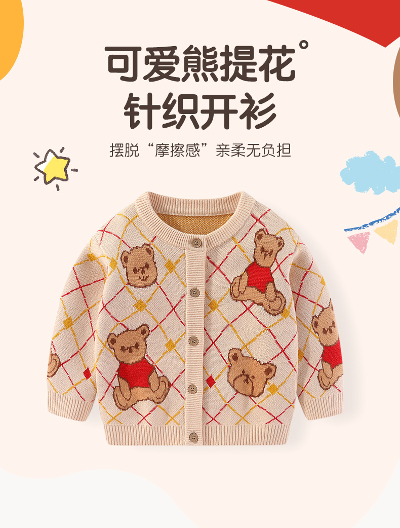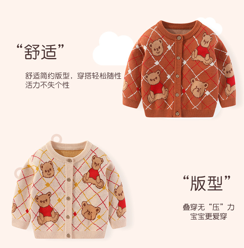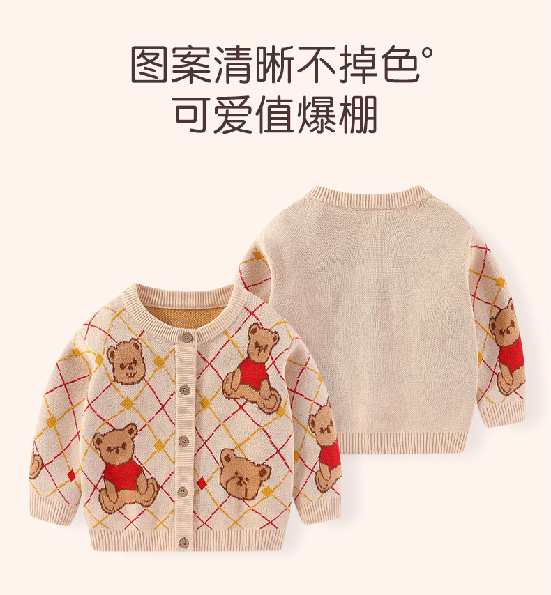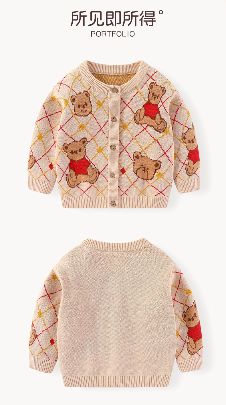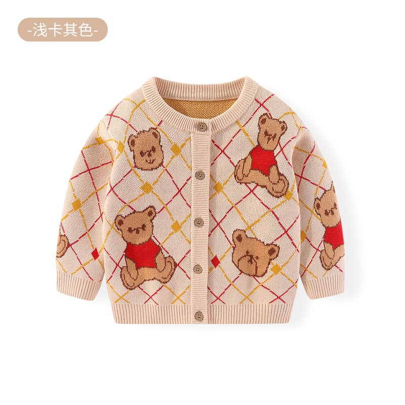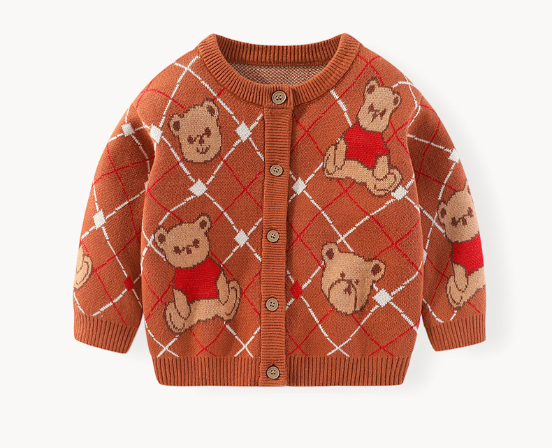 귀여운 곰 자카드 어린이 스웨터 카디건 코튼 클래스 A 니트 어린이 스웨터 가을 겨울 어린이 스웨터 코트스토어 가기