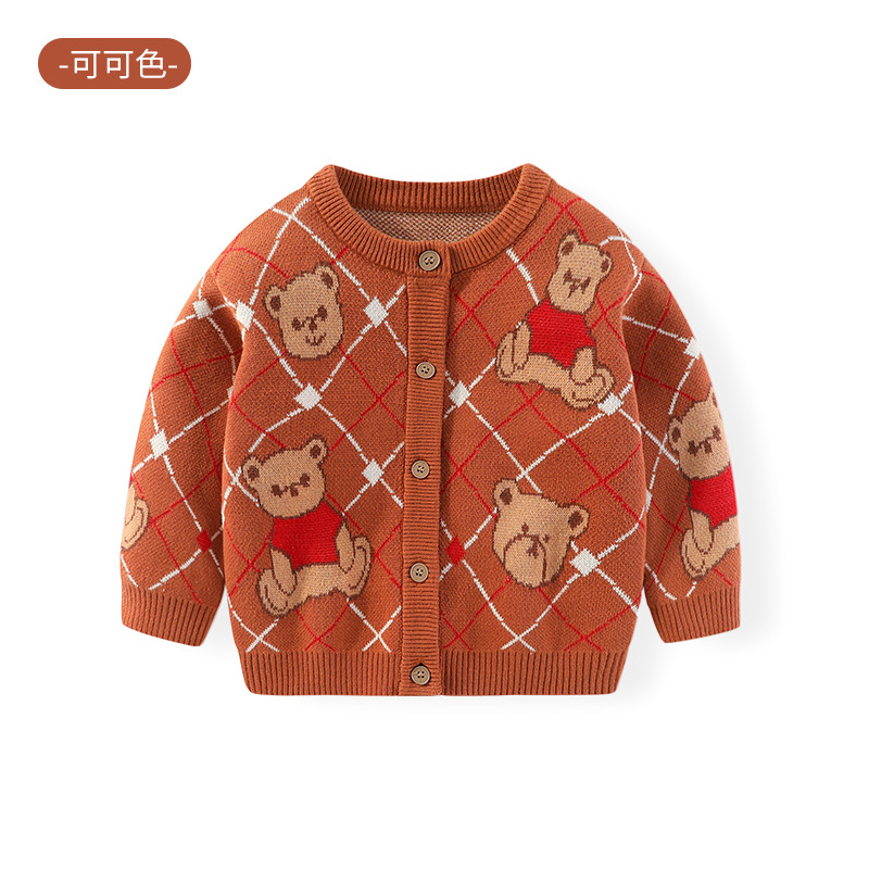 귀여운 곰 자카드 어린이 스웨터 카디건 코튼 클래스 A 니트 어린이 스웨터 가을 겨울 어린이 스웨터 코트