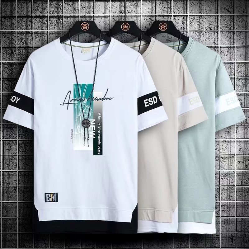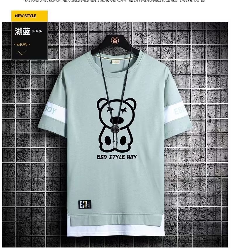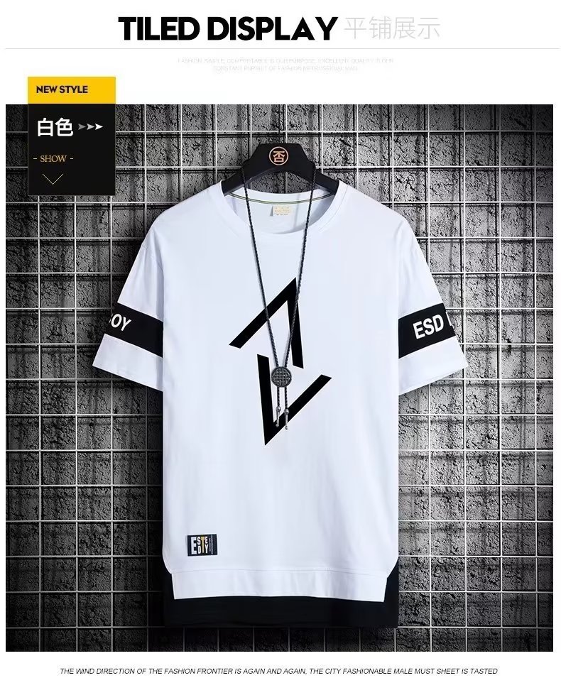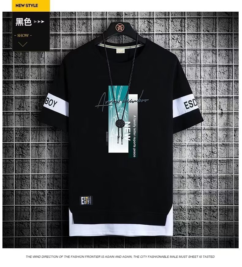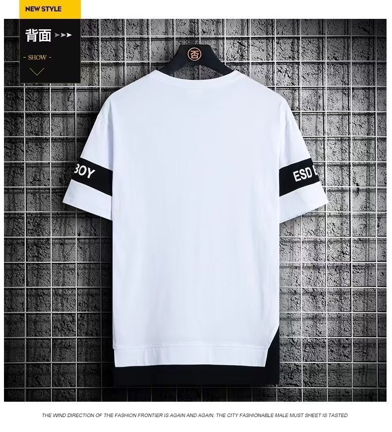 크루넥 심플 탑 남성 티셔츠 트렌디 캐주얼 여름 반팔 티셔츠 남성 청소년 남성 의류 반팔