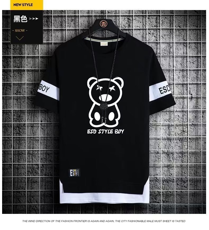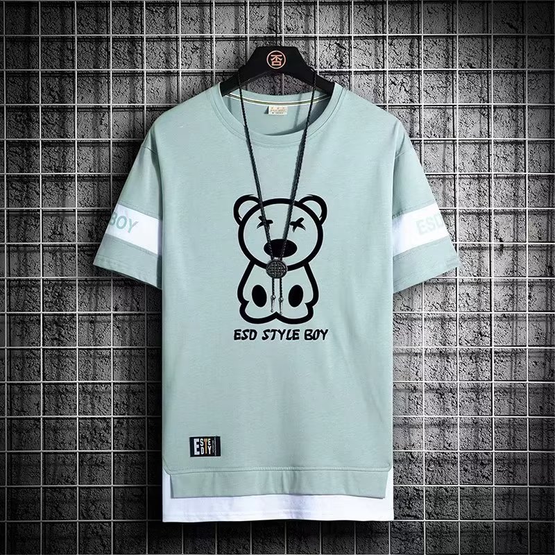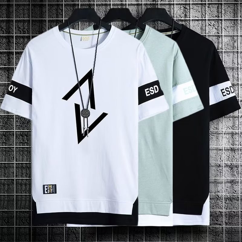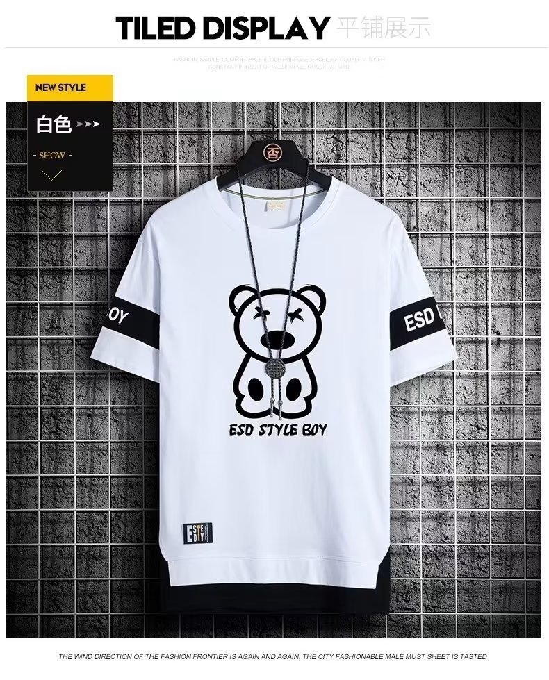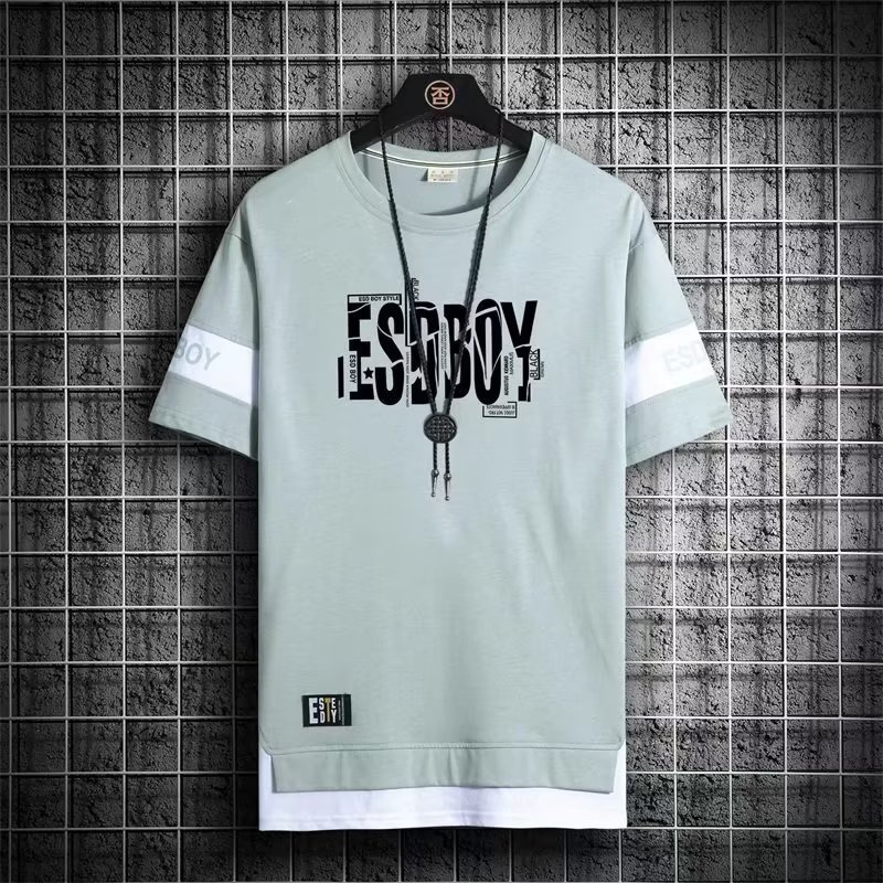 크루넥 심플 탑 남성 티셔츠 트렌디 캐주얼 여름 반팔 티셔츠 남성 청소년 남성 의류 반팔