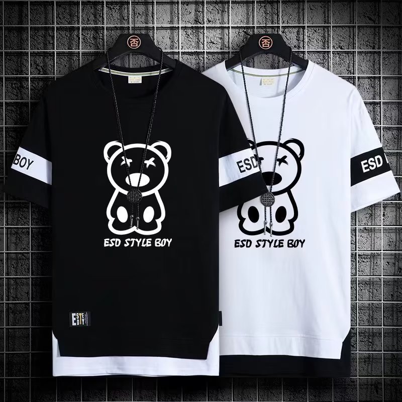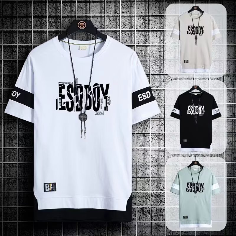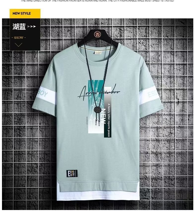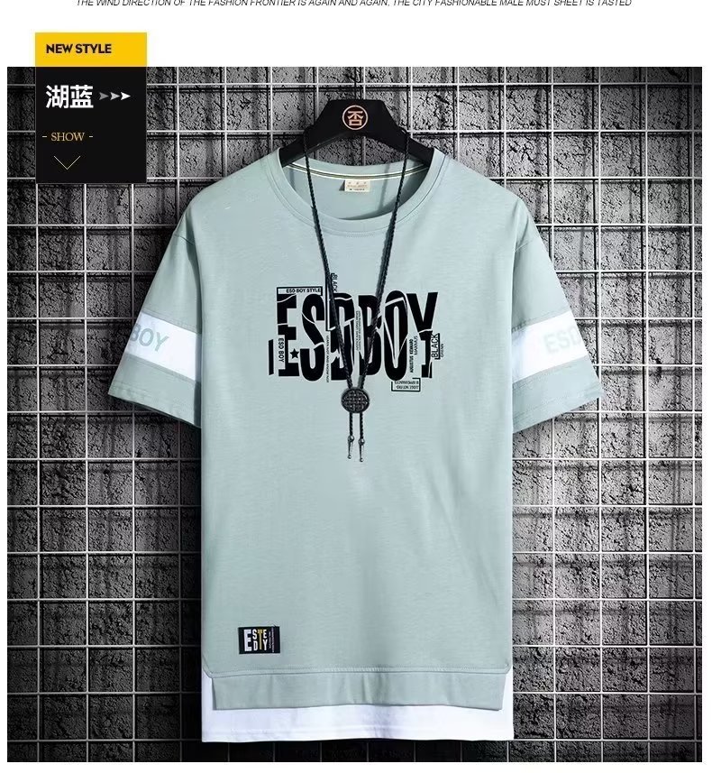 크루넥 심플 탑 남성 티셔츠 트렌디 캐주얼 여름 반팔 티셔츠 남성 청소년 남성 의류 반팔스토어 가기