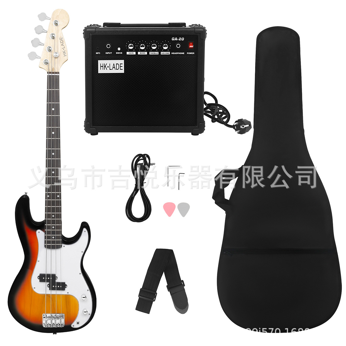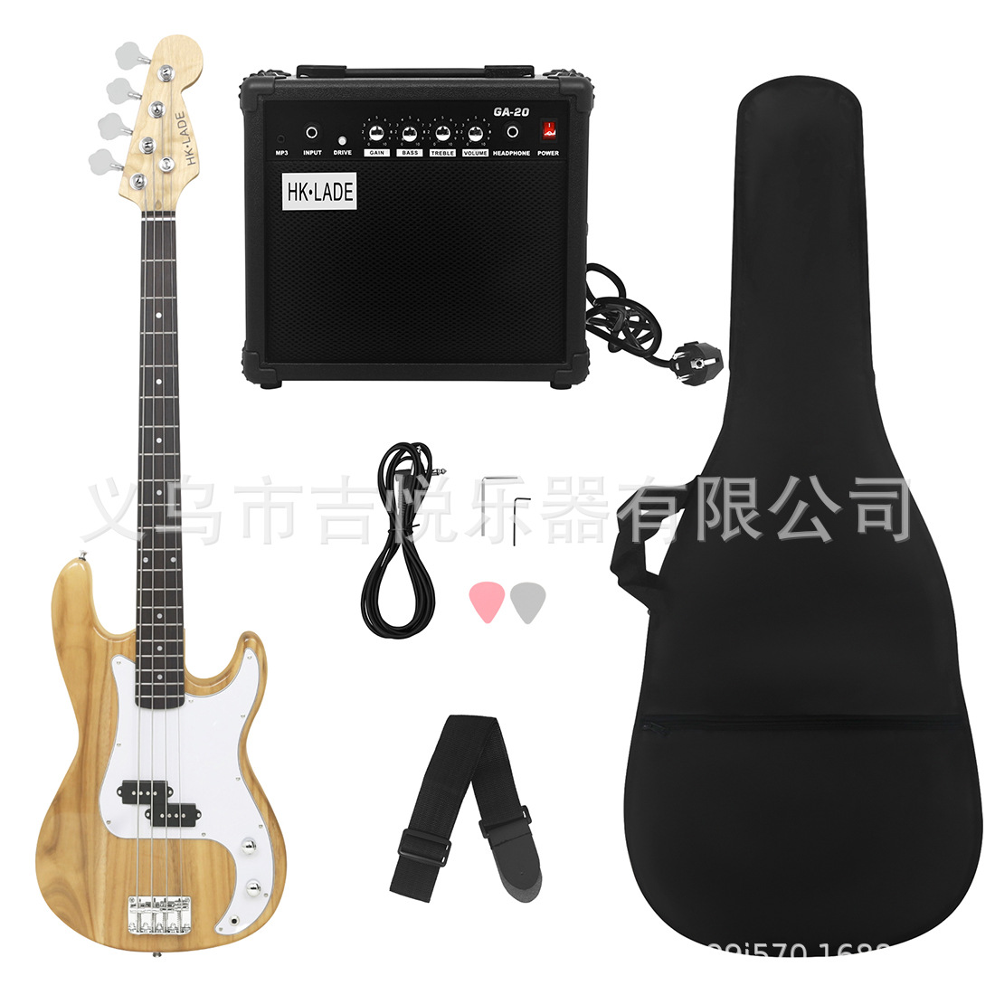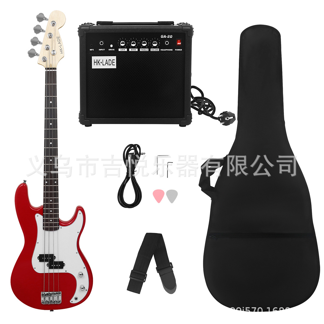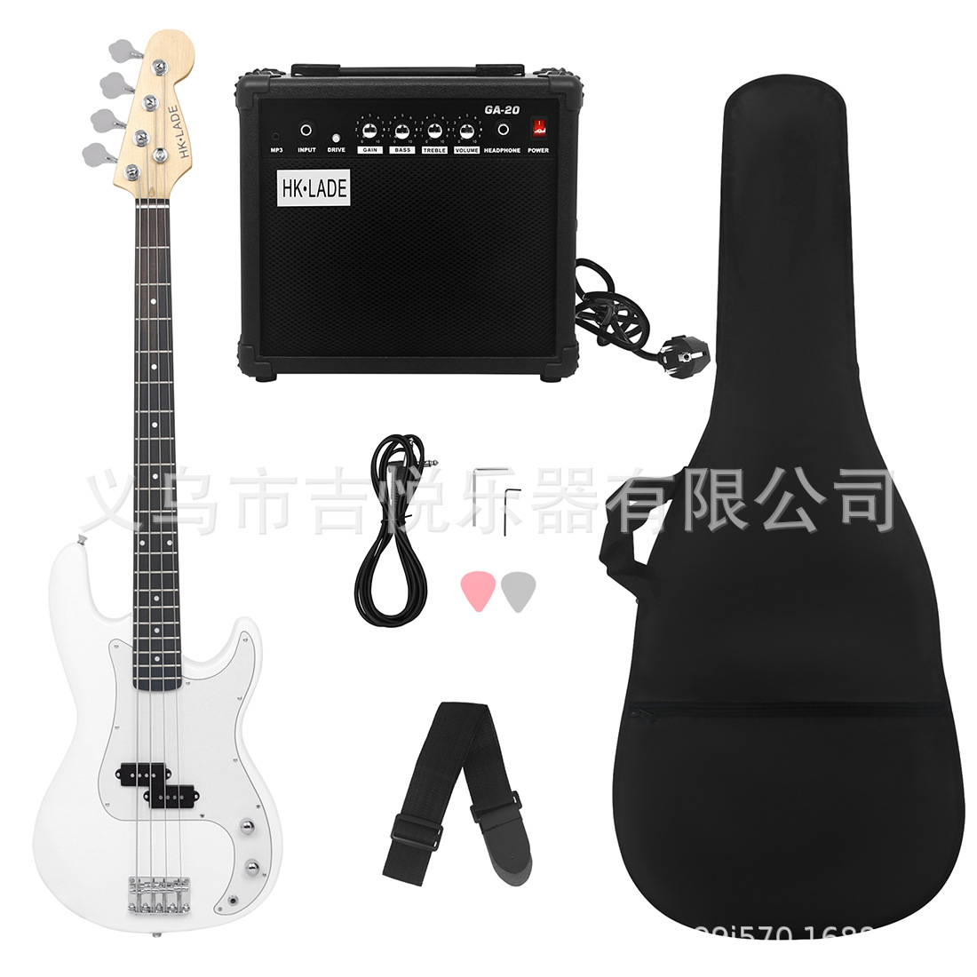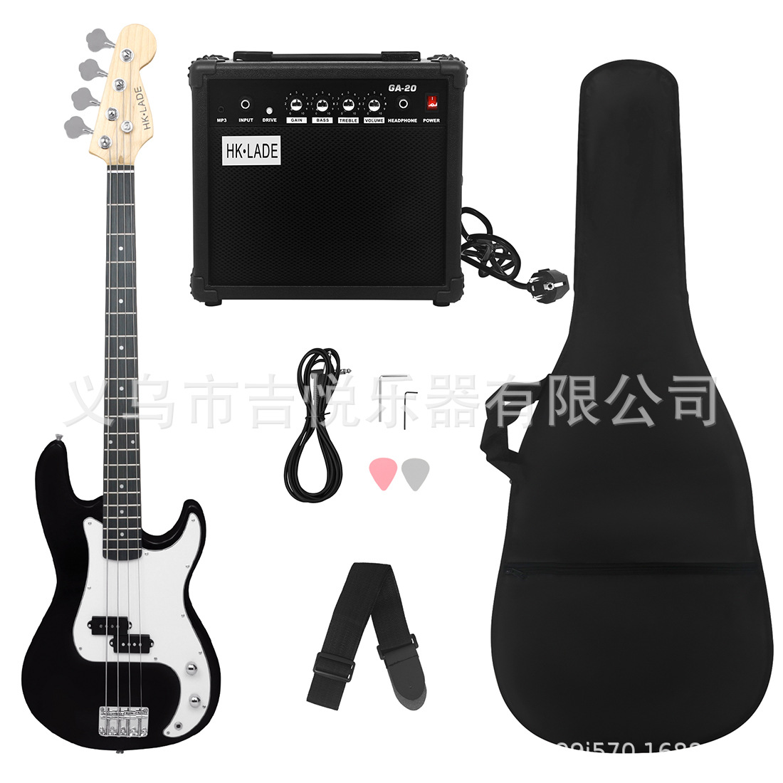 产品名称:HK·LADE新款HK-01 电贝司玫瑰木指板套装(音响+包+背带+拨片)