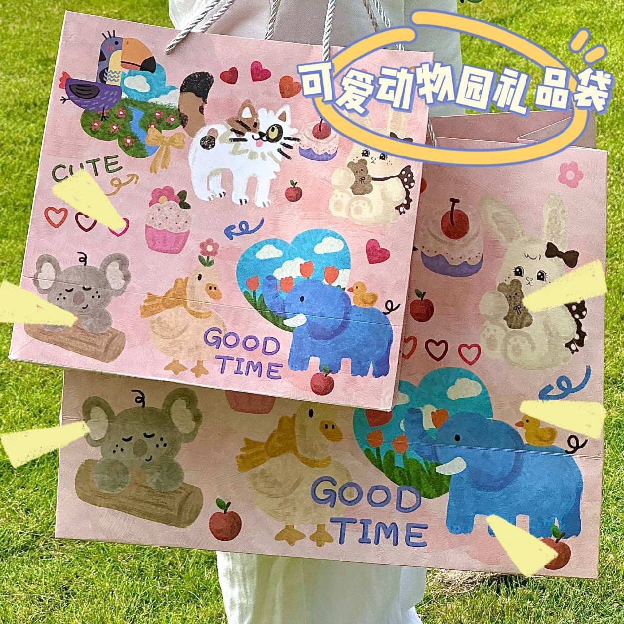 레트로 귀여운 동물원 플러스 사이즈 선물 가방 높은 색상 값 대용량 골판지 축복 친구 손 선물 가방