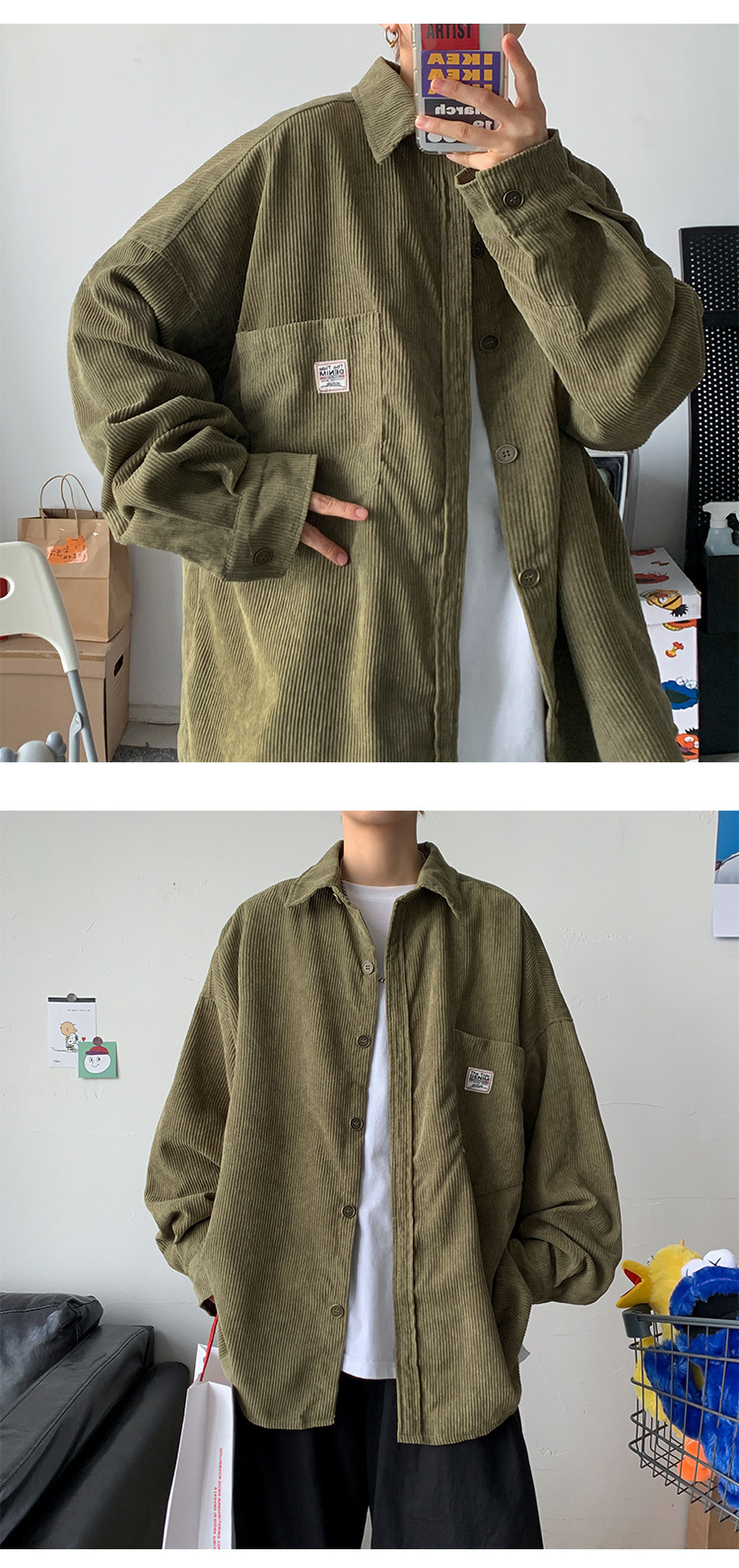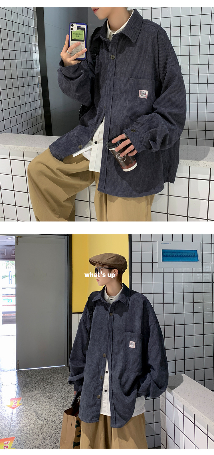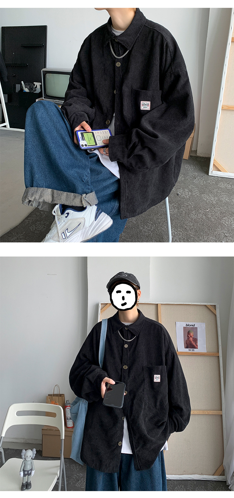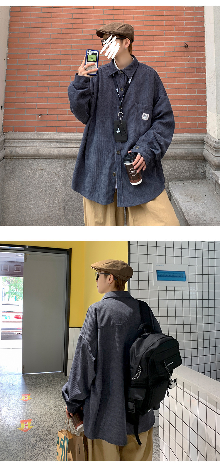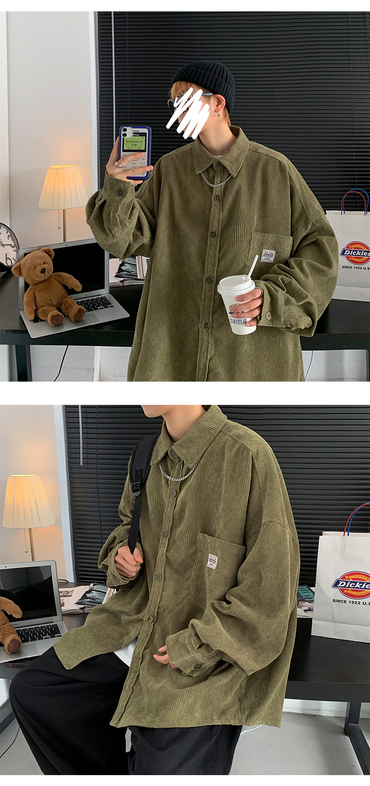 소년을위한 코듀로이 재킷 홍콩 스타일 일본식 트렌디 브랜드 따뜻한 느슨한 흰색 옷 디자인 센스 남성용 긴 소매 셔츠스토어 가기