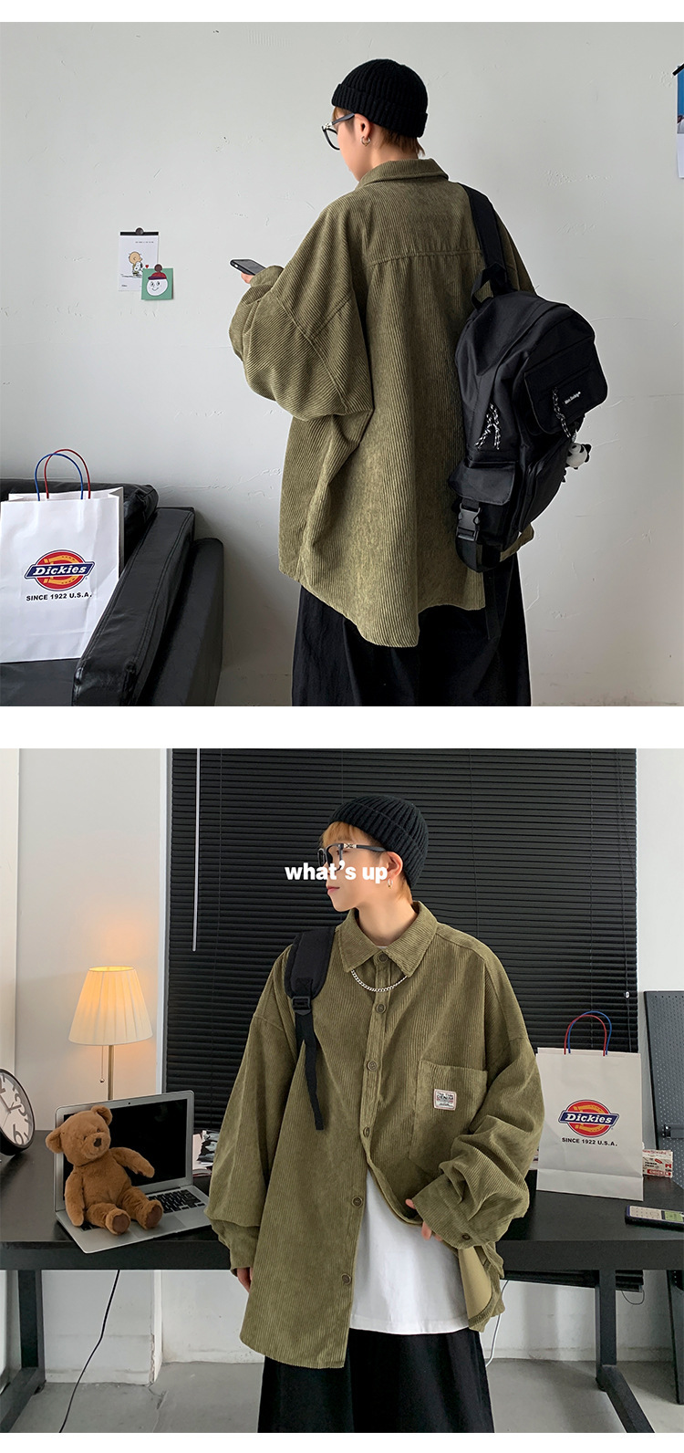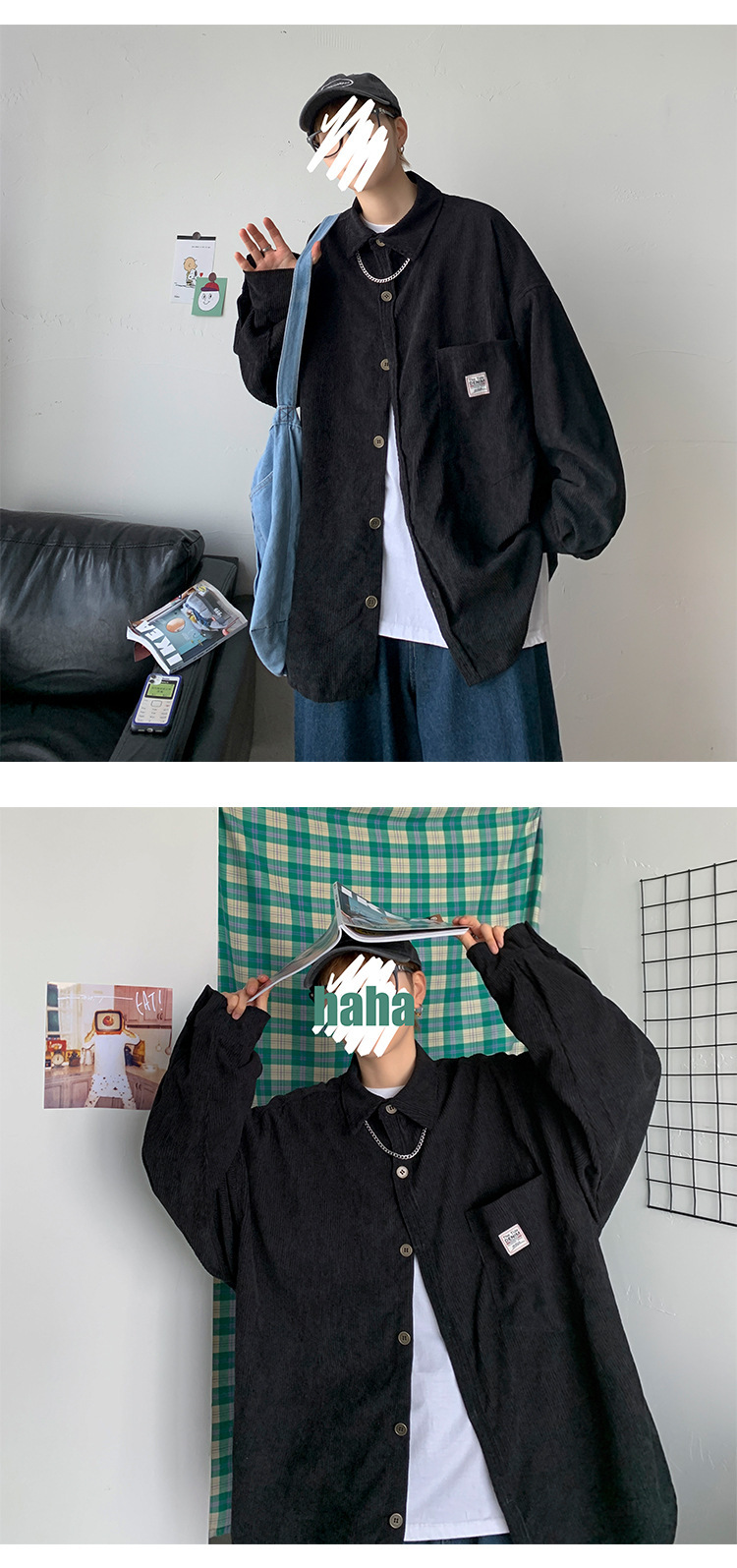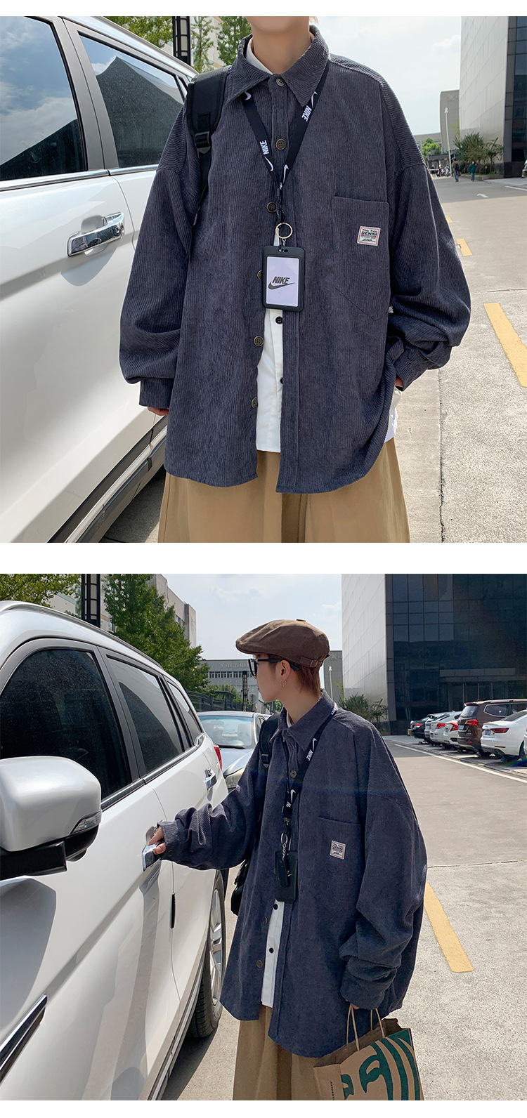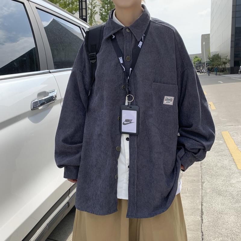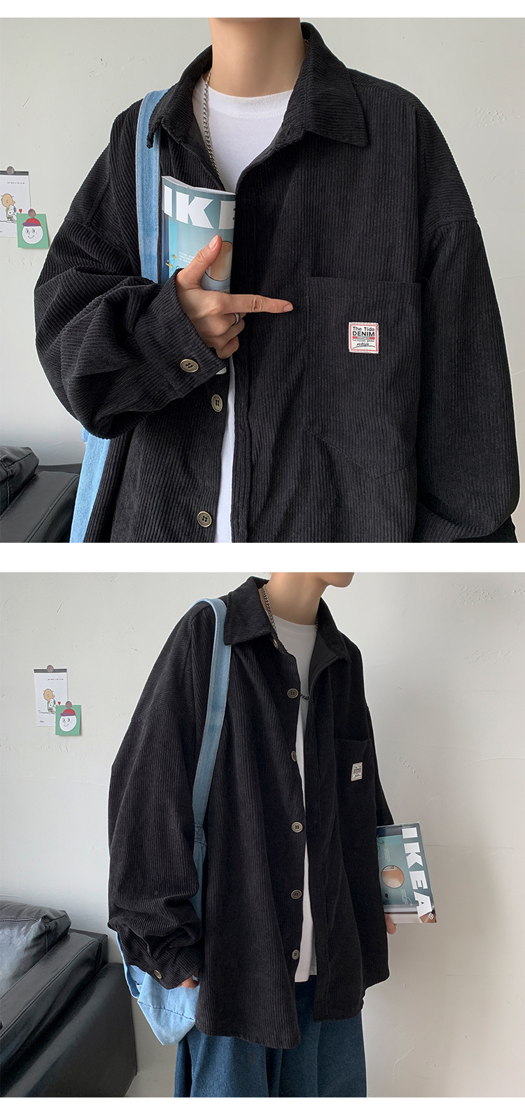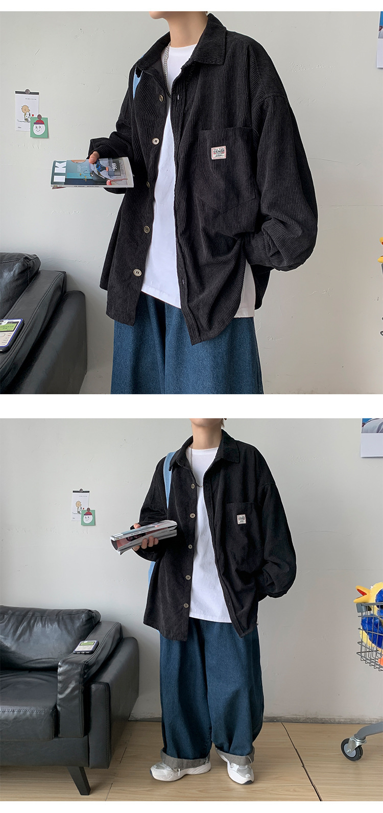 소년을위한 코듀로이 재킷 홍콩 스타일 일본식 트렌디 브랜드 따뜻한 느슨한 흰색 옷 디자인 센스 남성용 긴 소매 셔츠스토어 가기