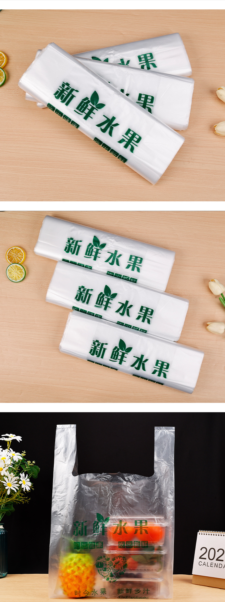 과일 비닐 봉투 일회용 두꺼운 조끼 가방 식품 등급 휴대용 플라스틱 포장 가방 공장 직접 공급 도매
