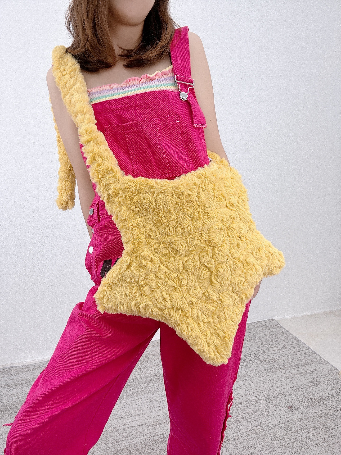 도파민 가방 새로운 귀여운 플러시 싱글 숄더 크로스 바디 백 틈새 캐주얼 다목적 Y2K 핫 소녀 모피스토어 가기