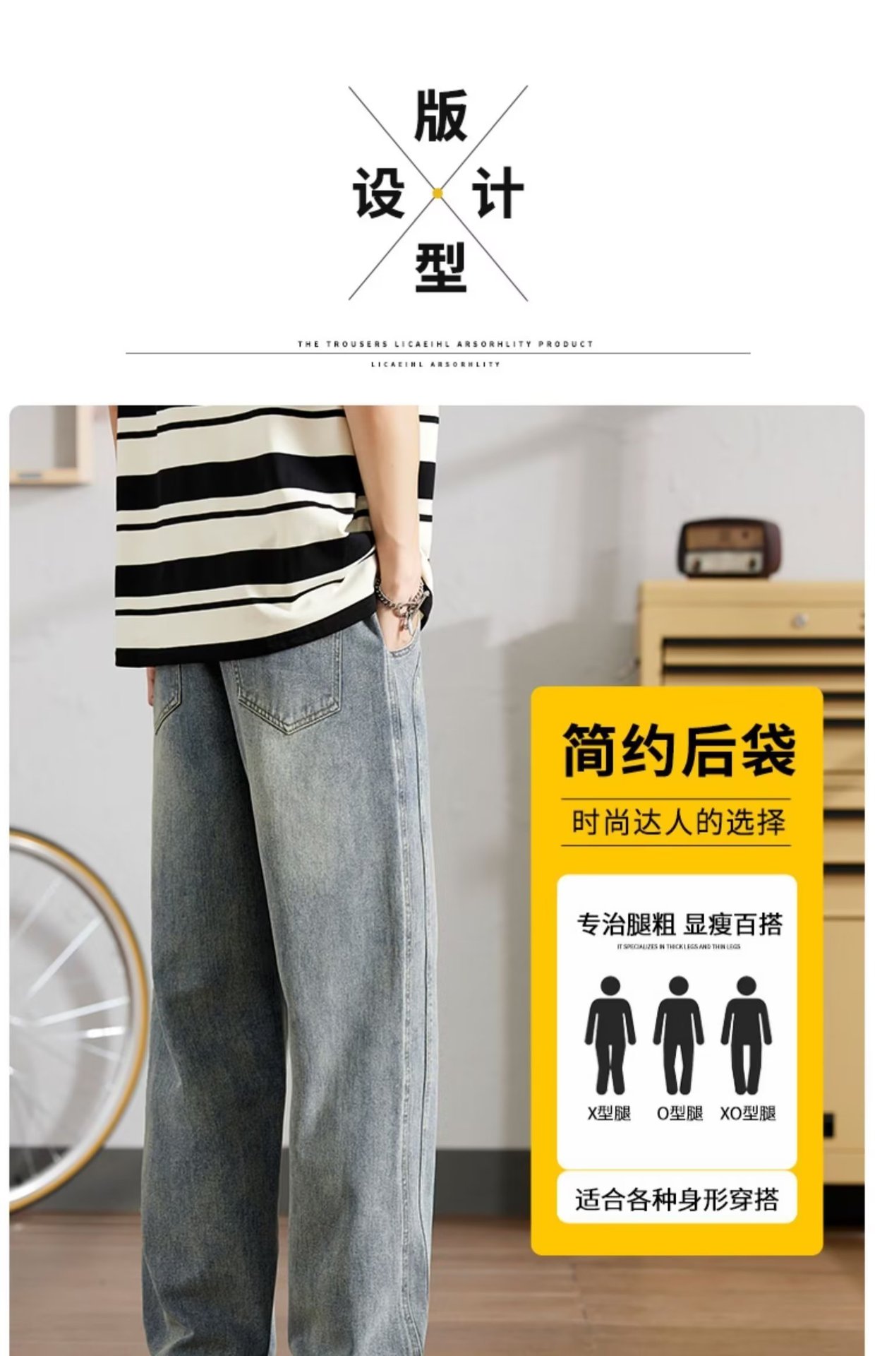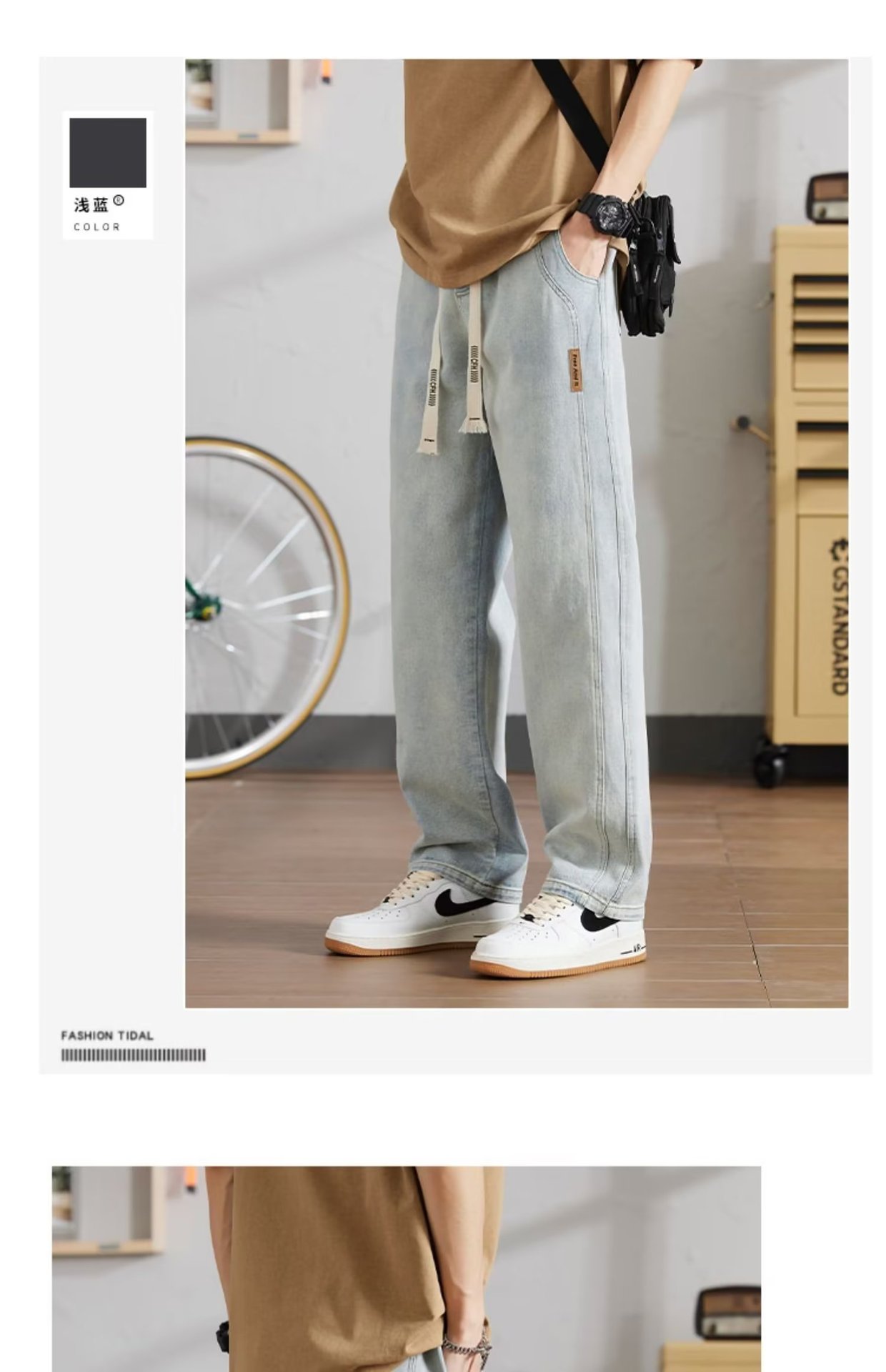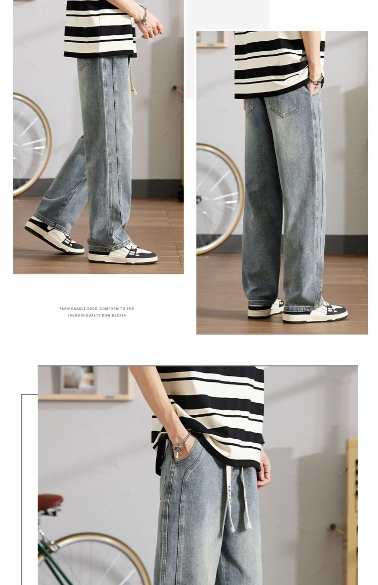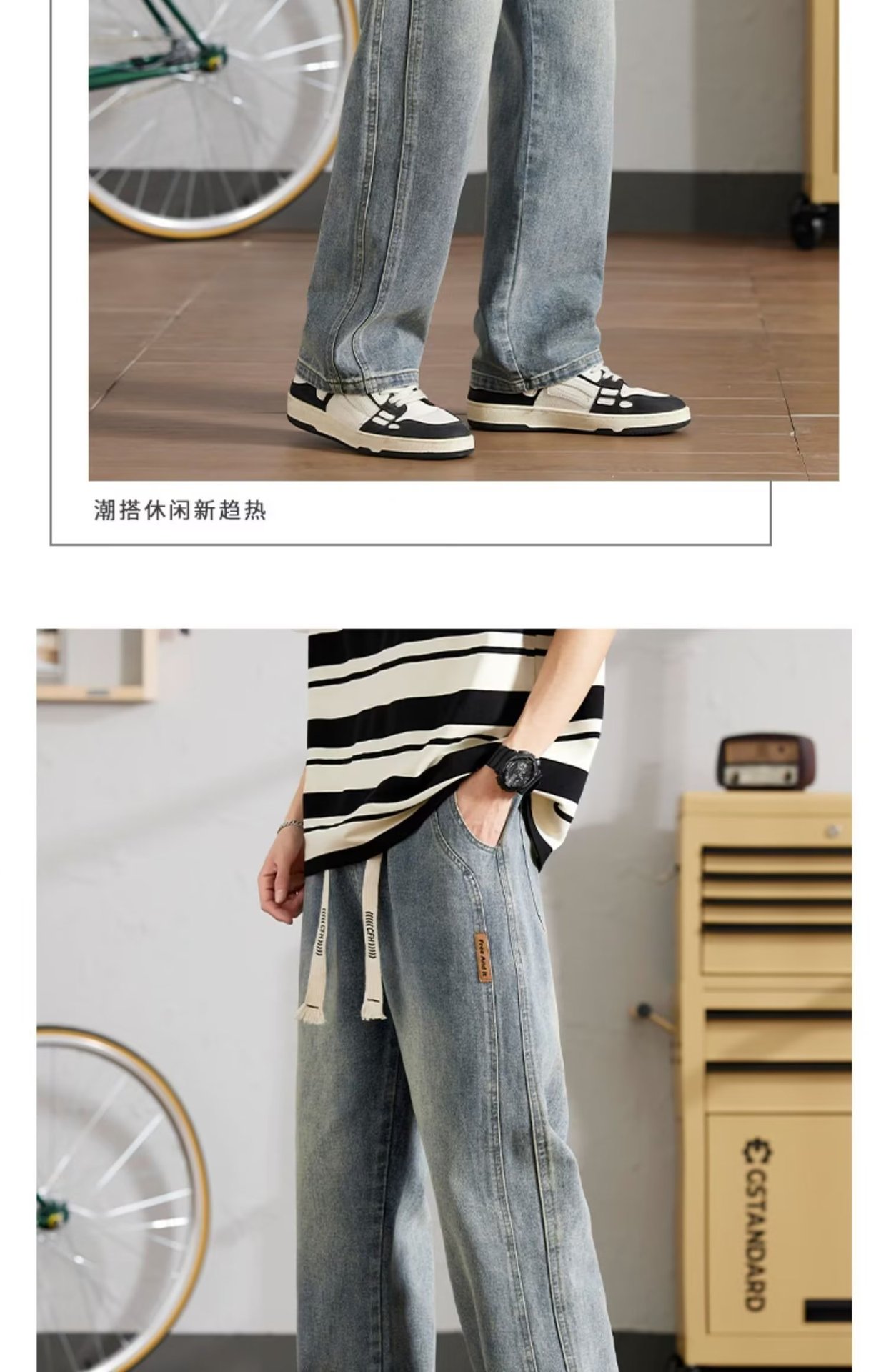 청바지 남성 여름 얇은 2023 트렌디 브랜드 아메리칸 스타일 하이 스트리트 느슨한 스트레이트 캐주얼 와이드 레그 롱 팬츠스토어 가기