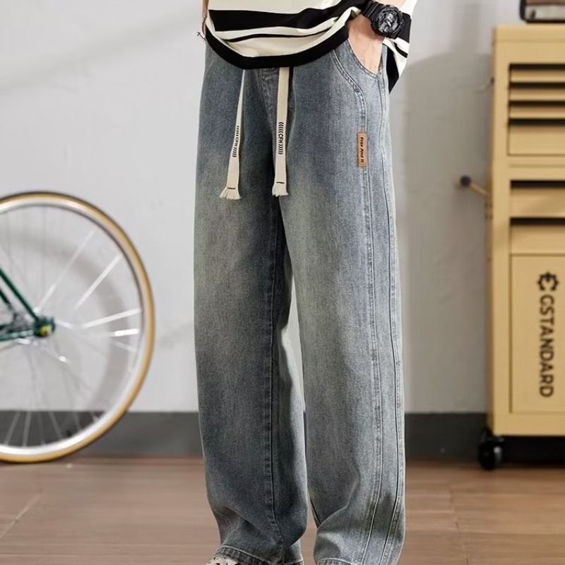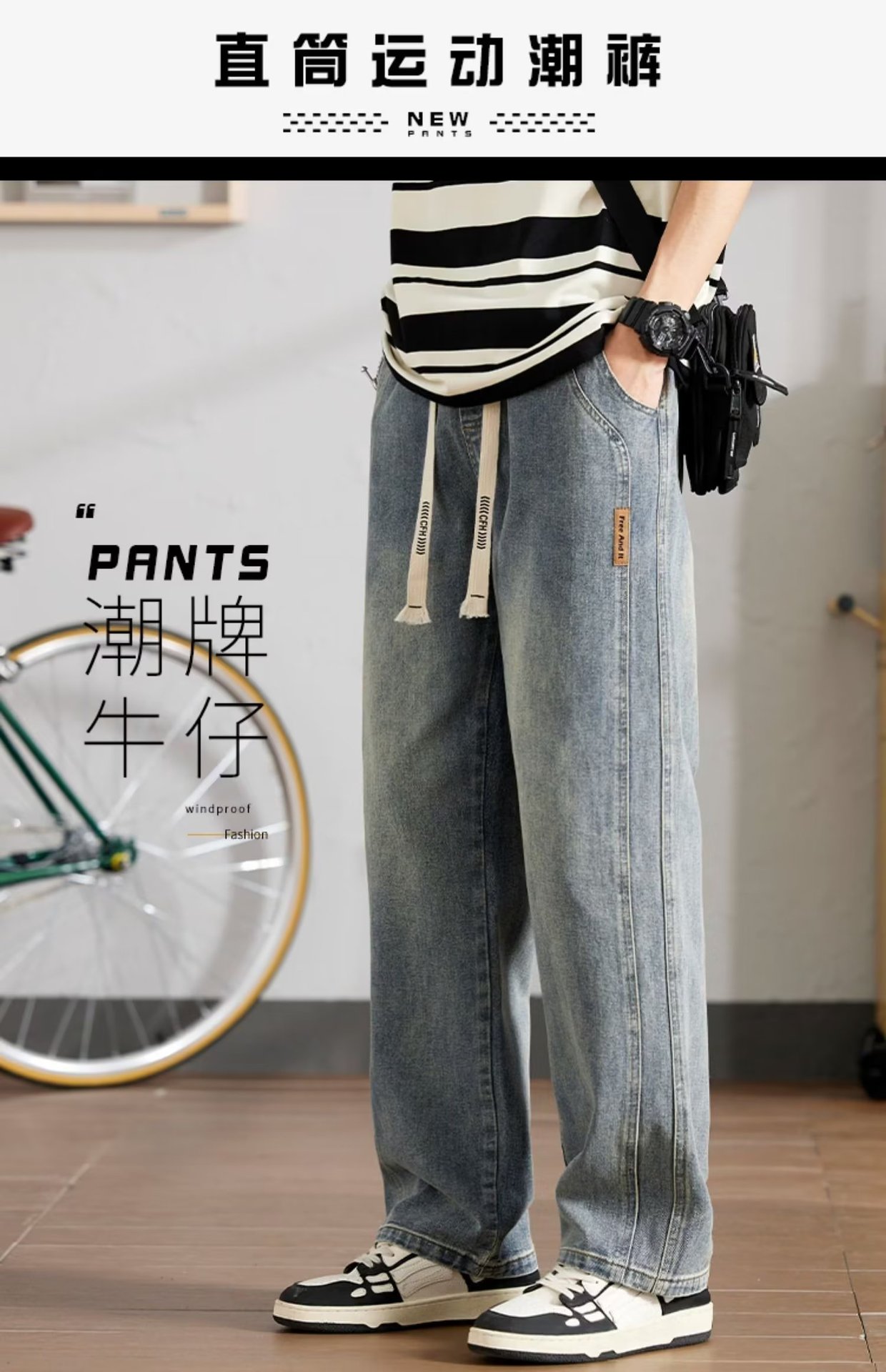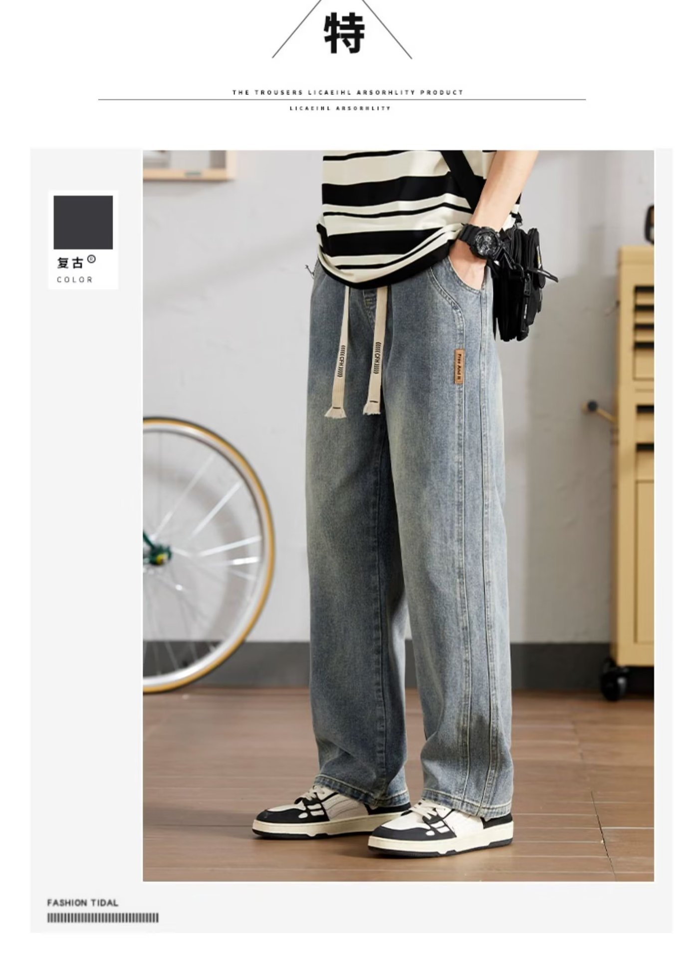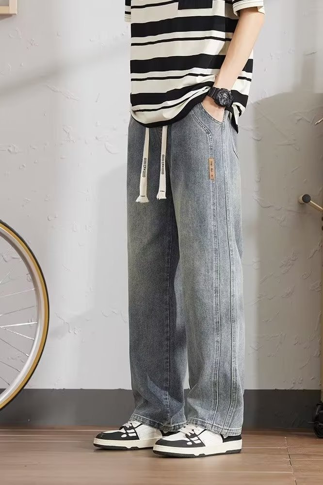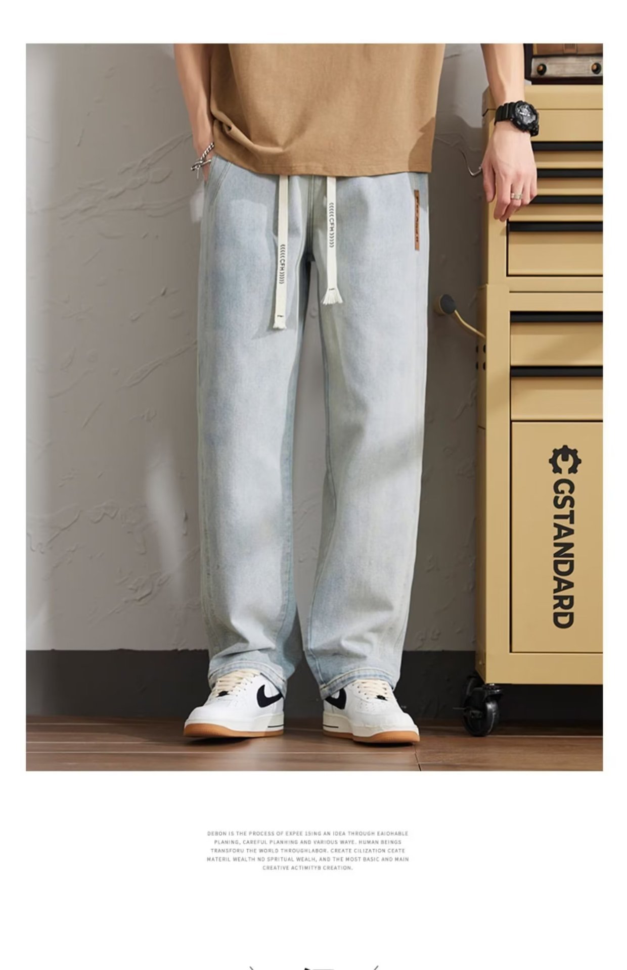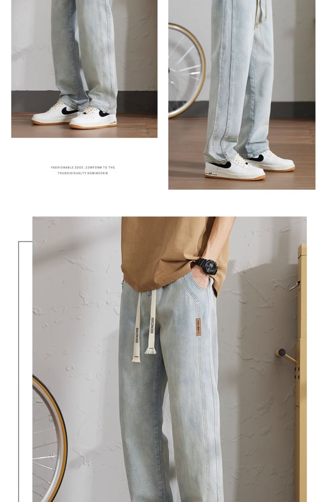 청바지 남성 여름 얇은 2023 트렌디 브랜드 아메리칸 스타일 하이 스트리트 느슨한 스트레이트 캐주얼 와이드 레그 롱 팬츠스토어 가기