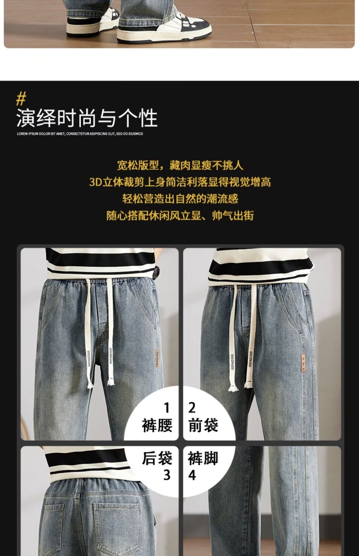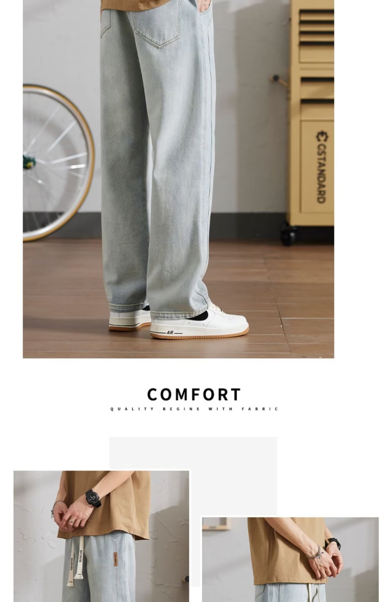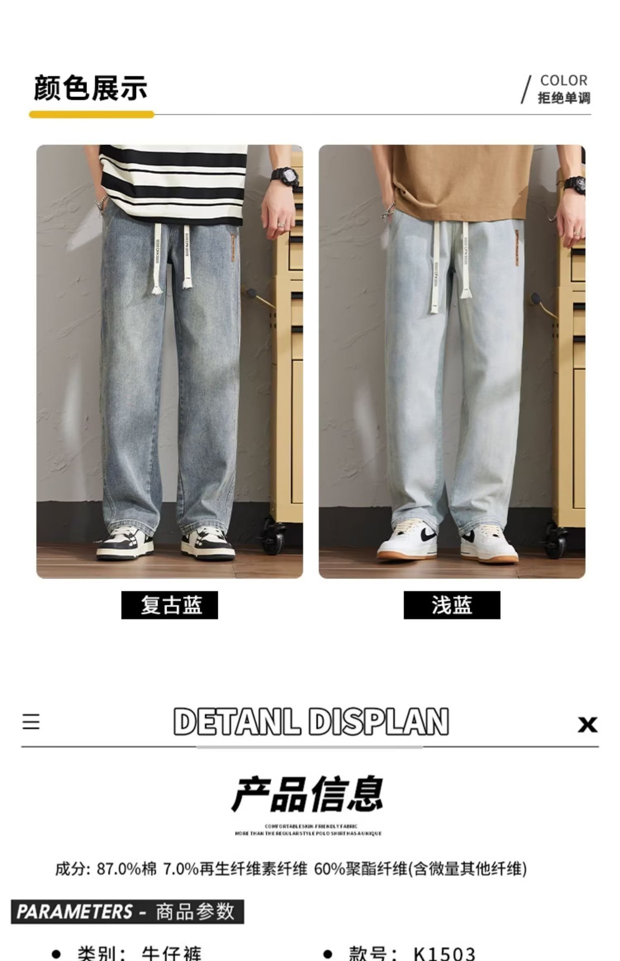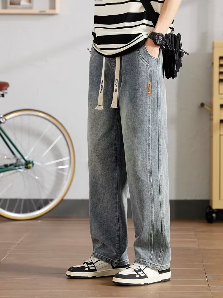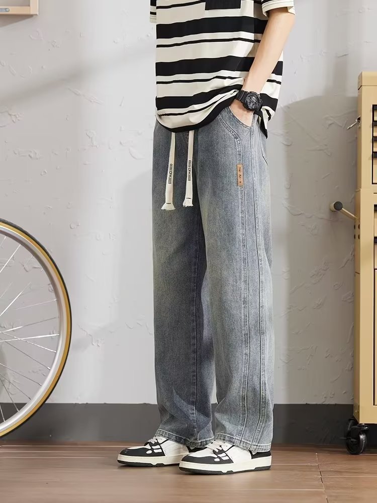 청바지 남성 여름 얇은 2023 트렌디 브랜드 아메리칸 스타일 하이 스트리트 느슨한 스트레이트 캐주얼 와이드 레그 롱 팬츠스토어 가기