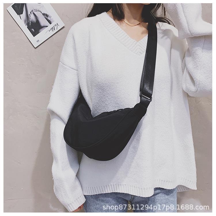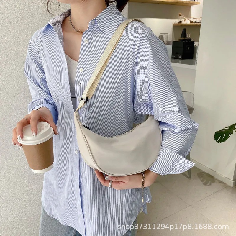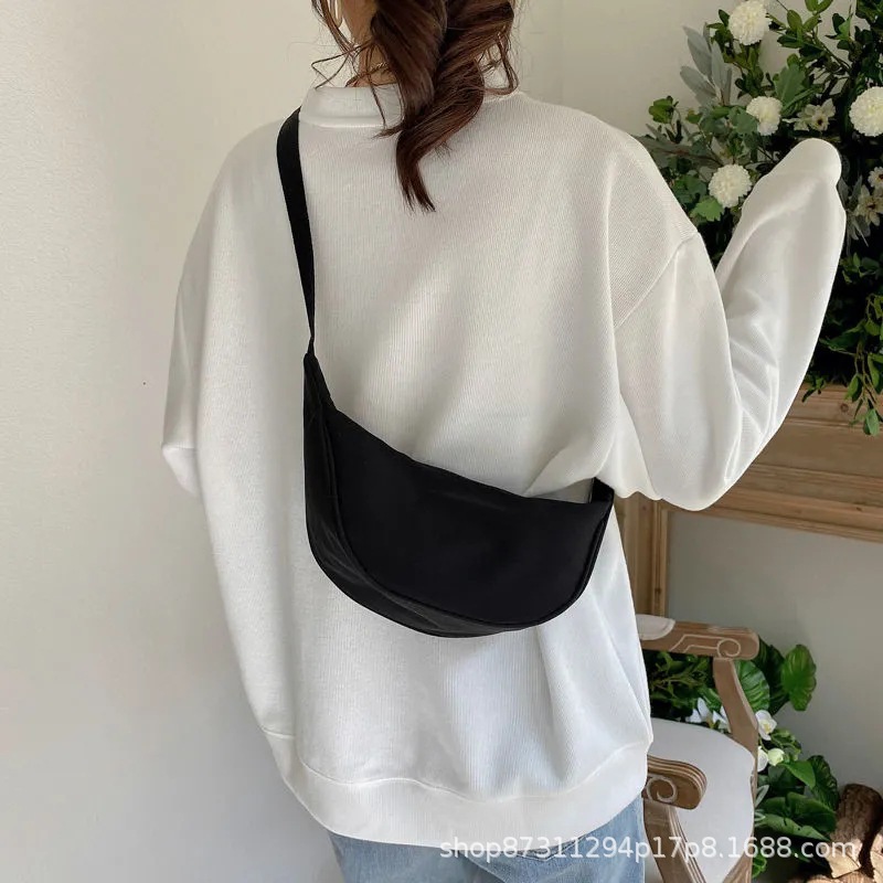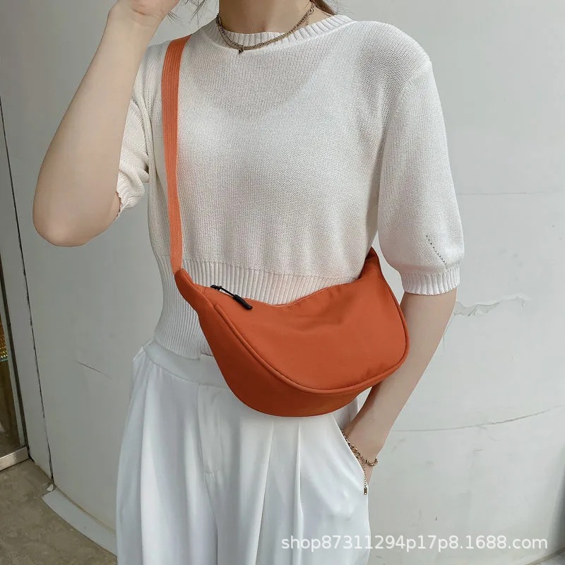 여성을위한 나일론 크로스 바디 백 2021 새로운 유행 만두 가방 경량 소형 어깨 가방 겨드랑이 가방 간단한 어깨 캔버스 가방