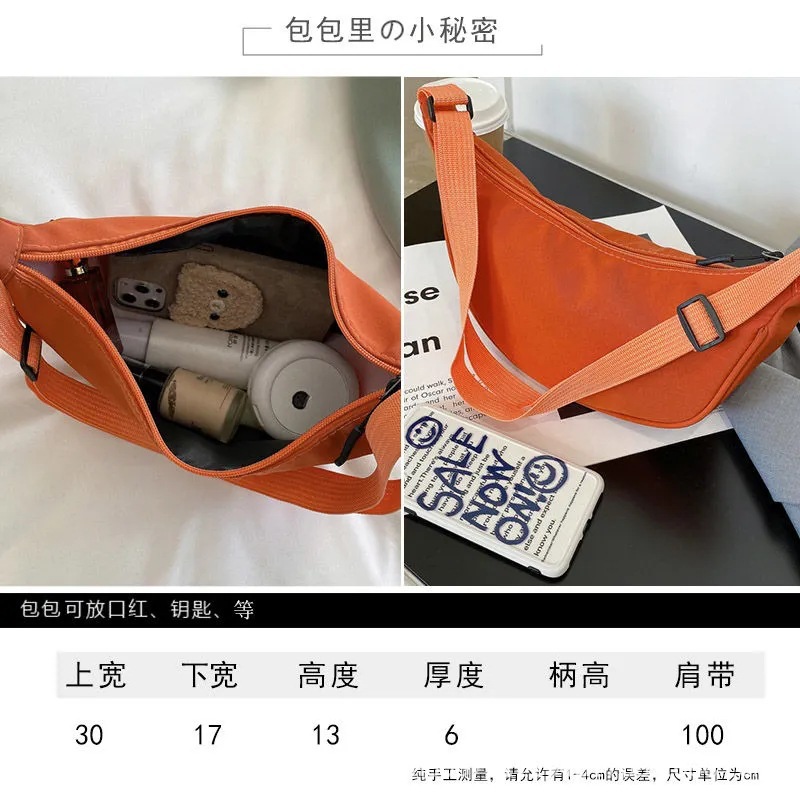 여성을위한 나일론 크로스 바디 백 2021 새로운 유행 만두 가방 경량 소형 어깨 가방 겨드랑이 가방 간단한 어깨 캔버스 가방스토어 가기