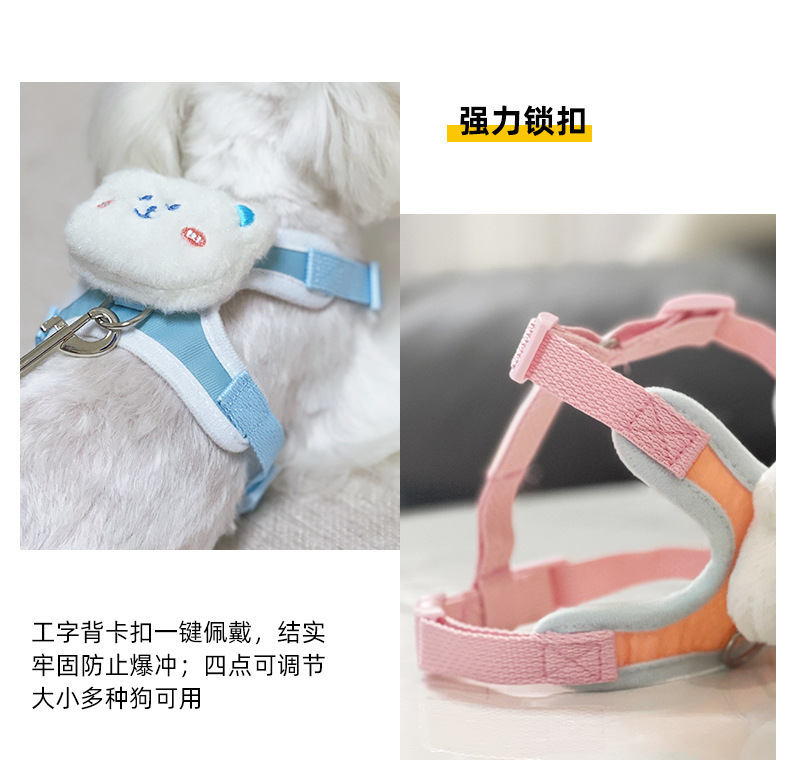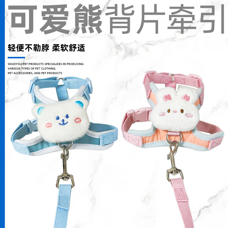 작은 개 애완 개 외출 귀여운 곰 뒷판 테디 베어 고양이 가죽 끈 걷는 개 가죽 끈 가슴 끈