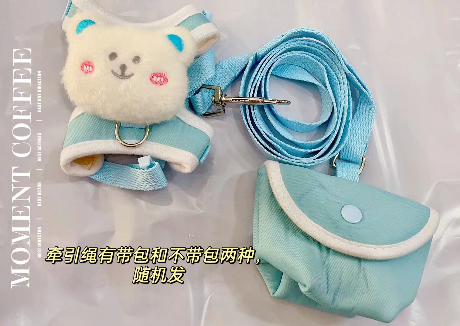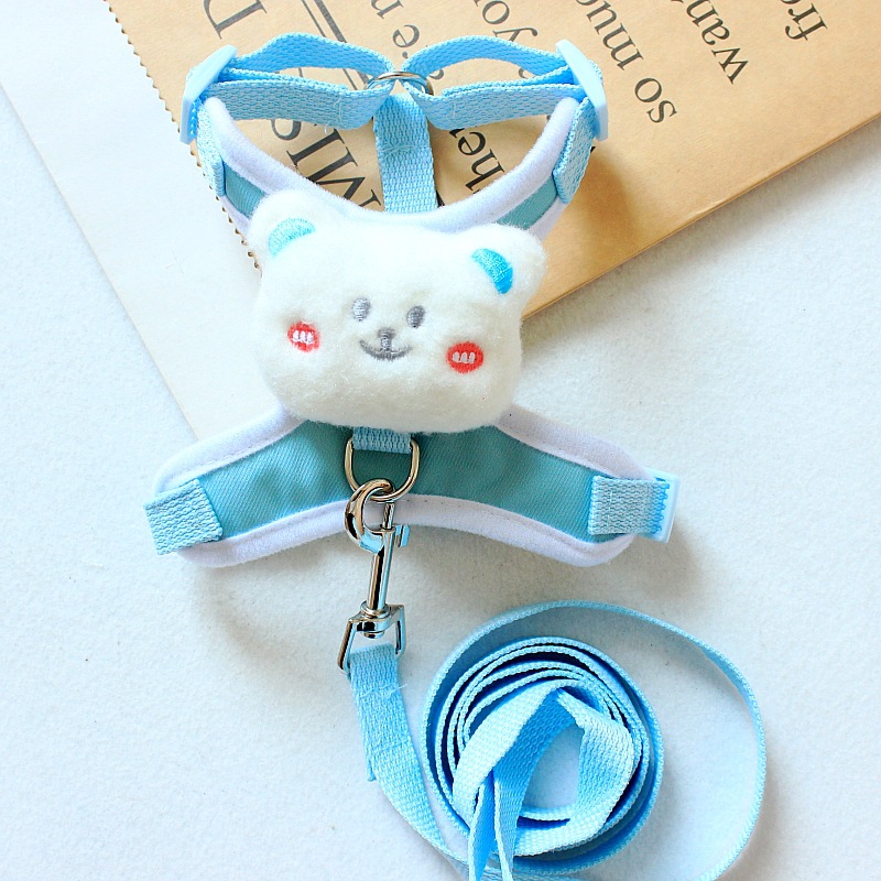 작은 개 애완 개 외출 귀여운 곰 뒷판 테디 베어 고양이 가죽 끈 걷는 개 가죽 끈 가슴 끈스토어 가기
