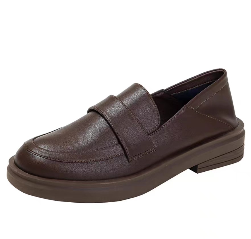 로퍼 여성 가을 두꺼운 밑창 레이스 업 블랙 슬립온 작업 신발 2023 새로운 영국 스타일 레트로 작은 가죽 신발