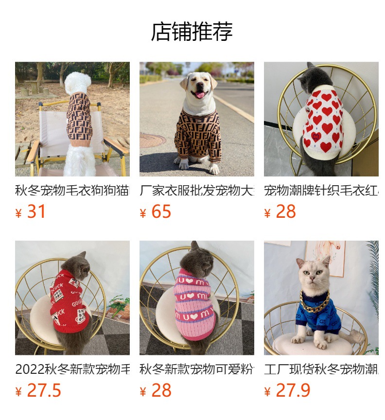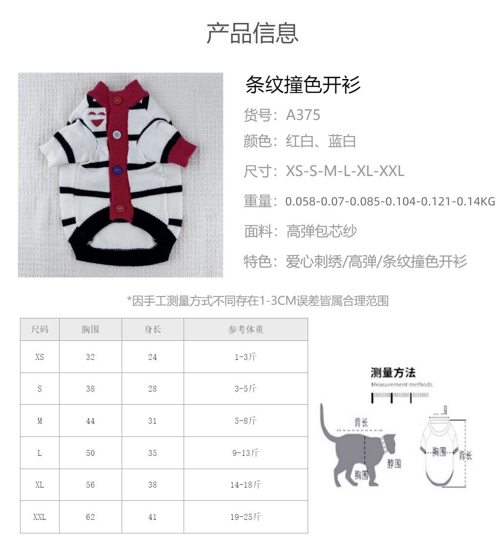 공장 재고 애완 동물 스웨터 도매 개 고양이 가을과 겨울 대비 색상 카디건 타이드 브랜드 니트 따뜻한 중소 셔츠스토어 가기