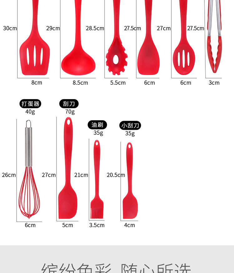 실리콘 조리기구 세트, 논스틱 냄비주걱, 고온에 강한 주방 도구, 냄비주걱, 수프스푼, 음식 집게, 계란 거품기, 거품주걱스토어 가기