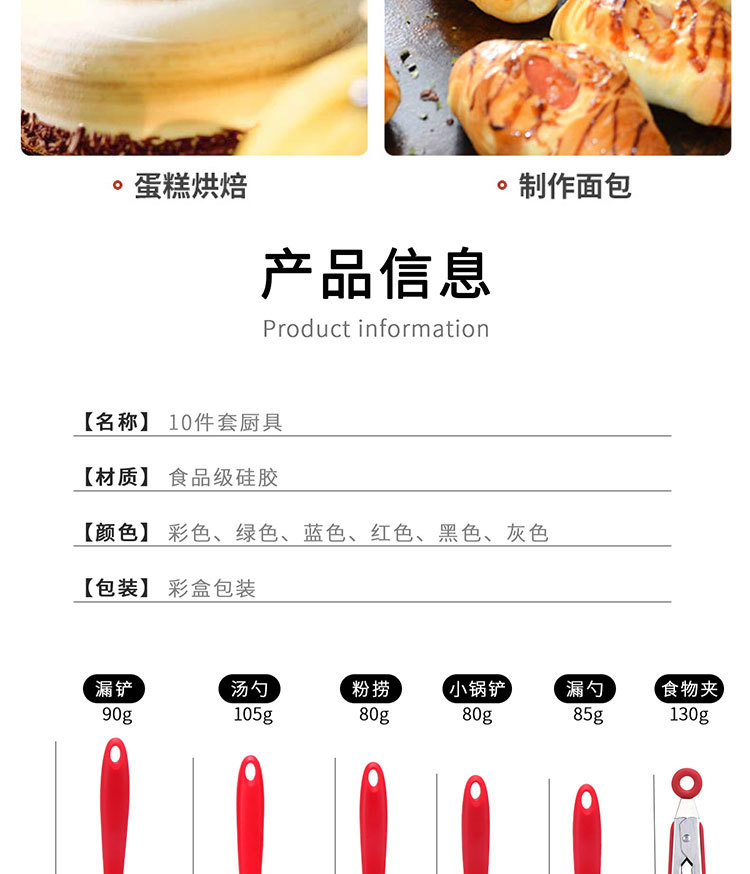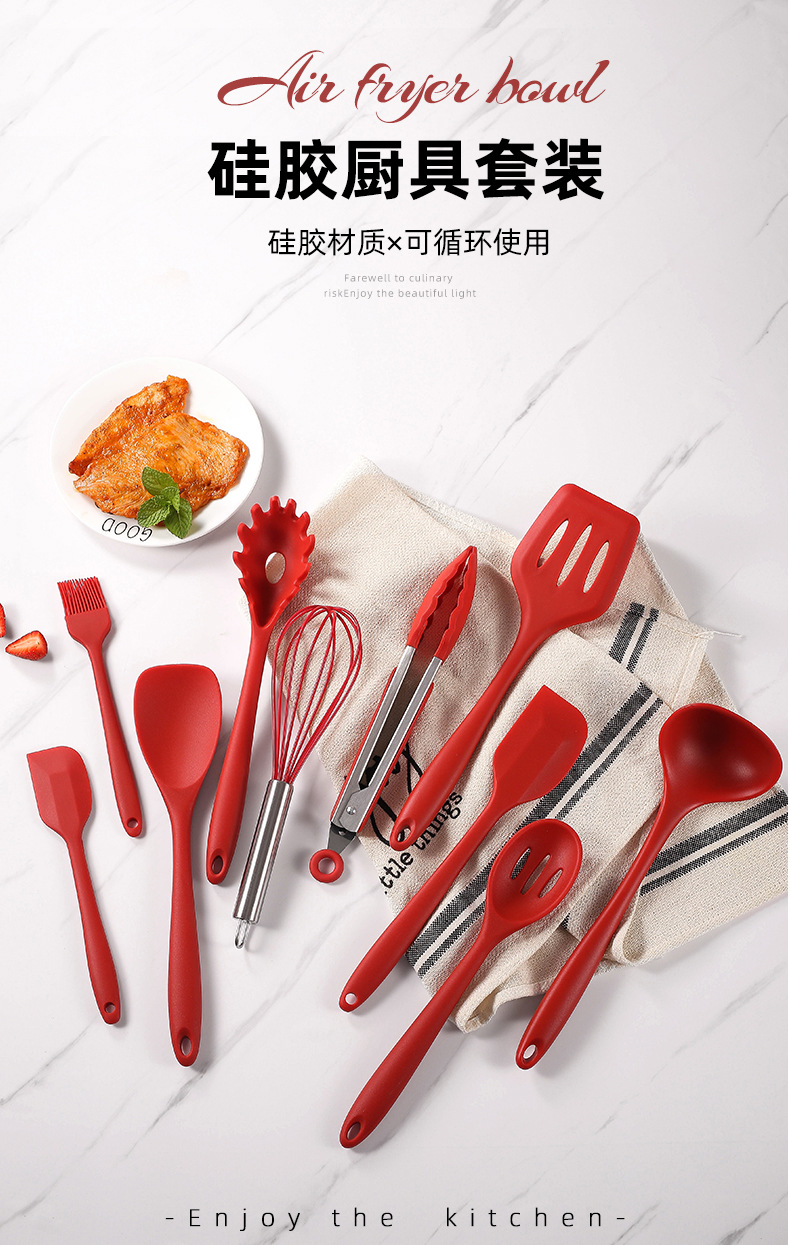 실리콘 조리기구 세트, 논스틱 냄비주걱, 고온에 강한 주방 도구, 냄비주걱, 수프스푼, 음식 집게, 계란 거품기, 거품주걱