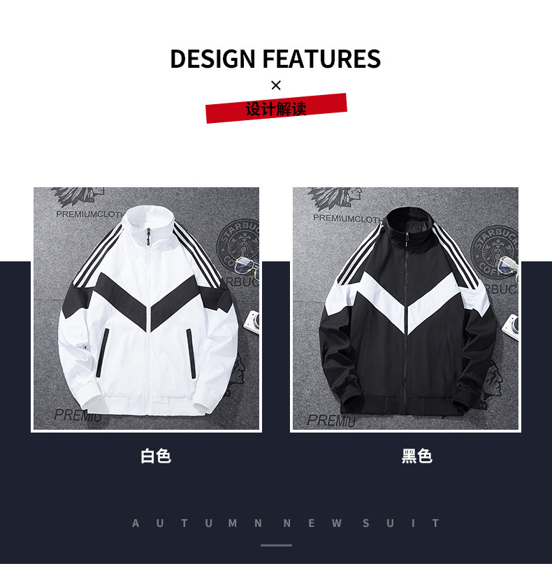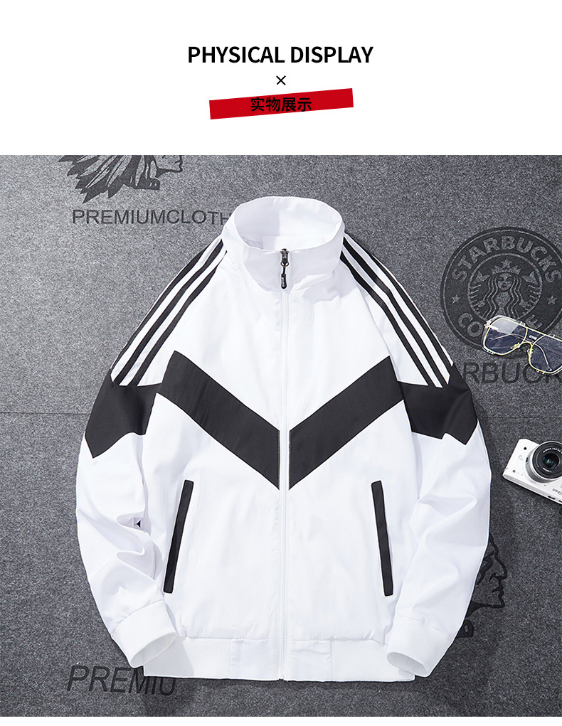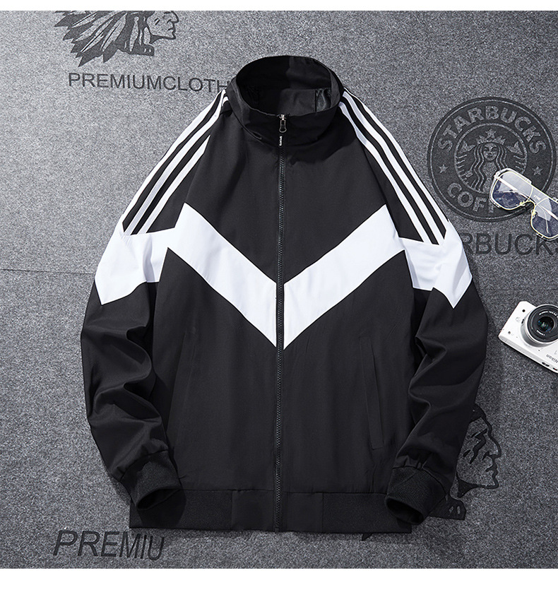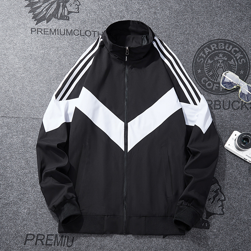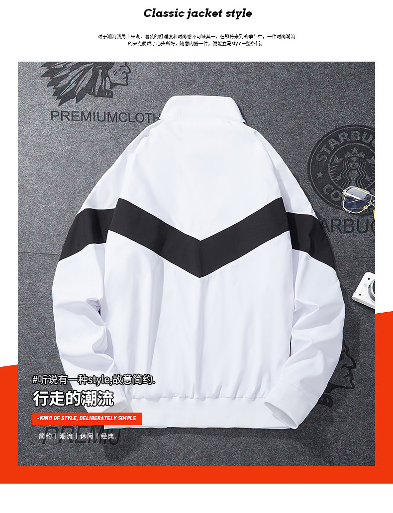봄과 가을 남성 코트 심플 패션 스포츠 트렌디 캐주얼 재킷 느슨한 스탠드 칼라 컬러 인서트 코트 데일리 모든 매치스토어 가기