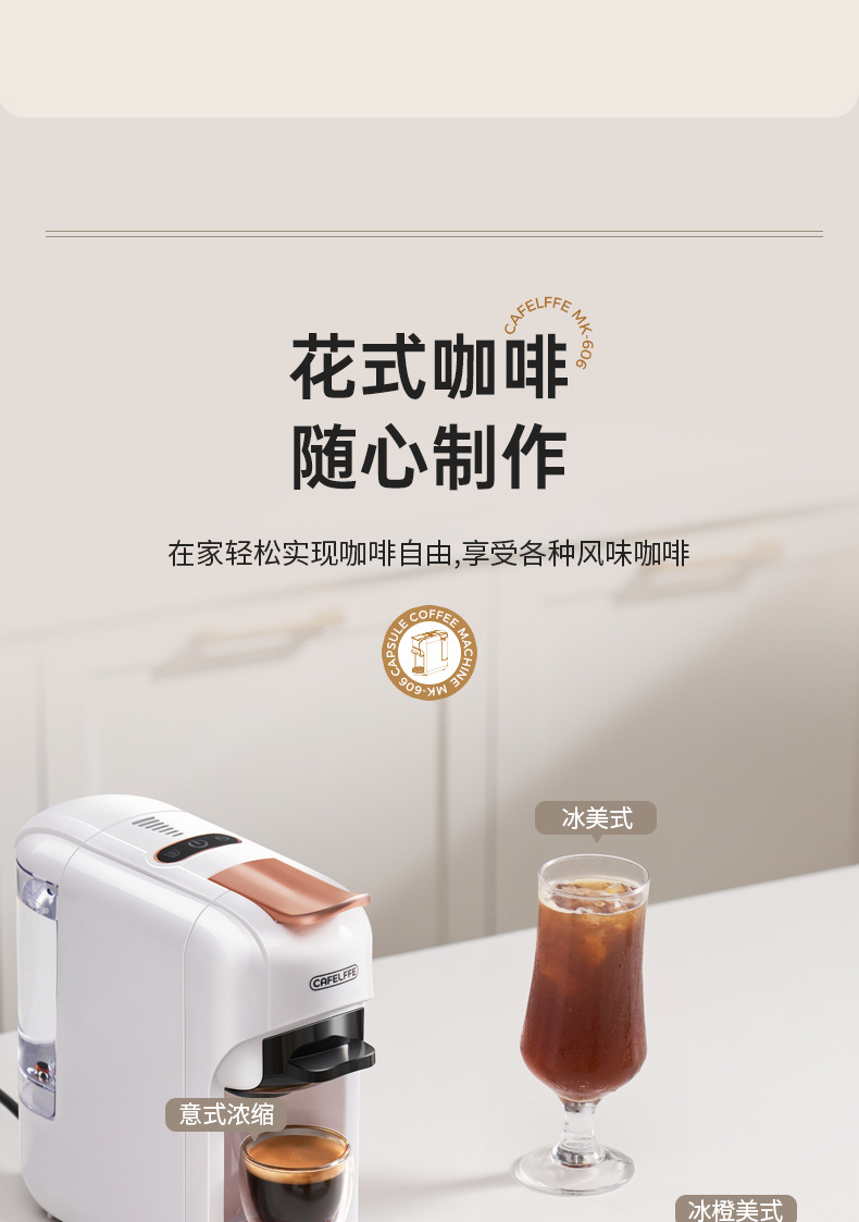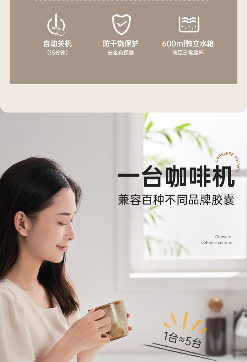 5-in -1 캡슐 커피 머신 자동 소형 가정용 커피 머신 7 단 수위 고온 및 저온 이탈리아 미국 캡슐 머신