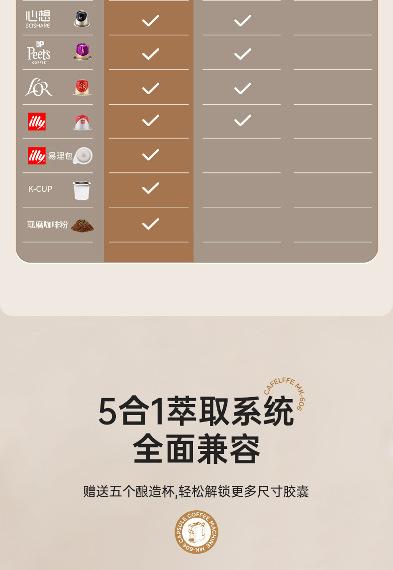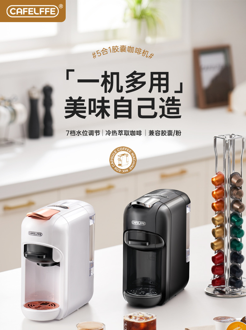 5-in -1 캡슐 커피 머신 자동 소형 가정용 커피 머신 7 단 수위 고온 및 저온 이탈리아 미국 캡슐 머신스토어 가기