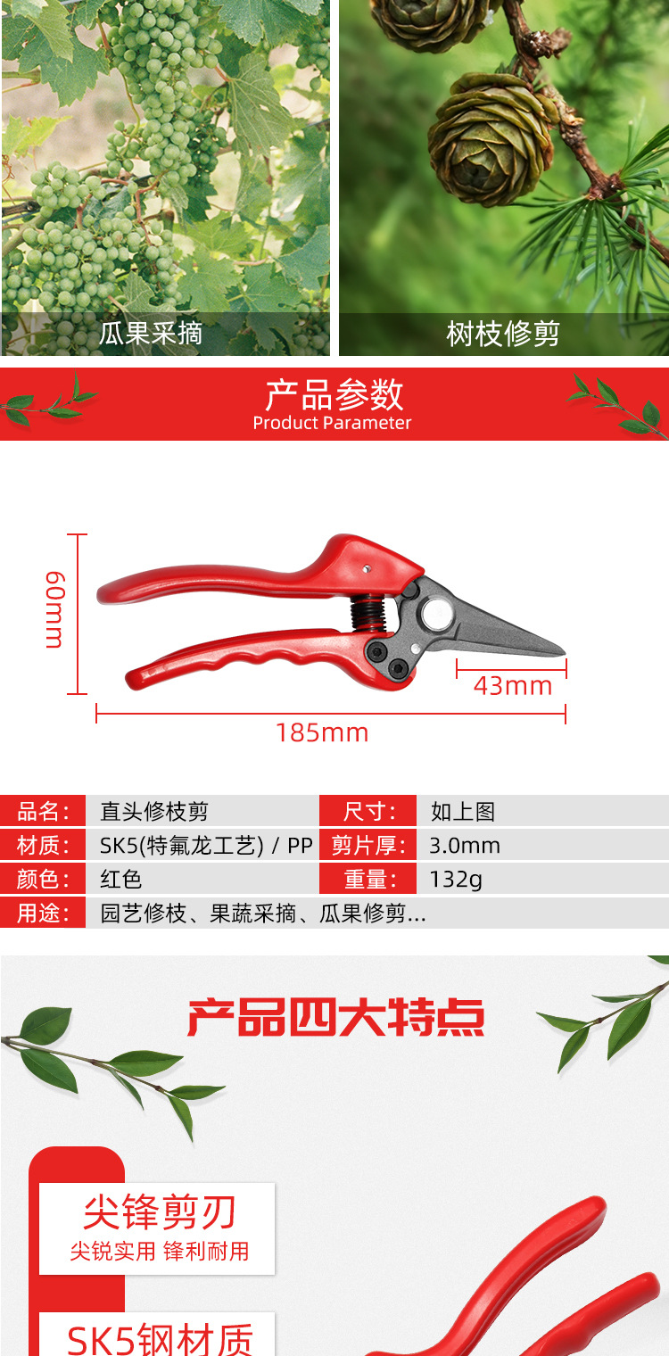 SK5 테프론 정원 가위 공장 도매 원예 가지 치기 도구 가지 치기 가위 과일 나무 따기 가위스토어 가기