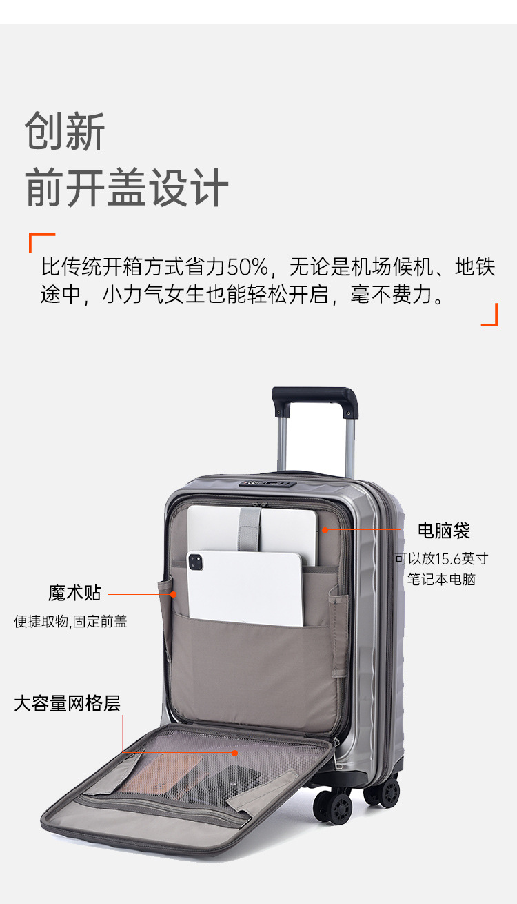 단합 스타 일본 전면 오프닝 가방 20 인치 비즈니스 탑승 상자 15.6 인치 컴퓨터 가방이 확장 될 수 있습니다