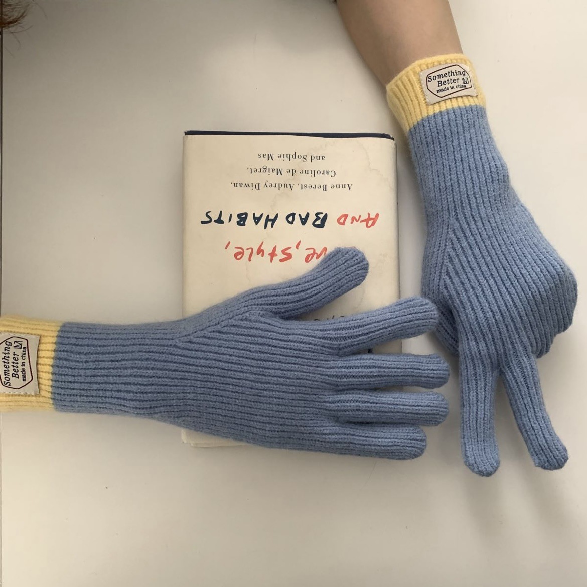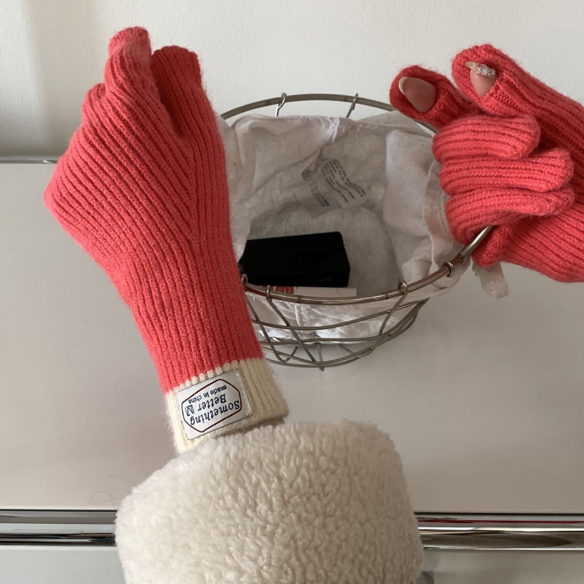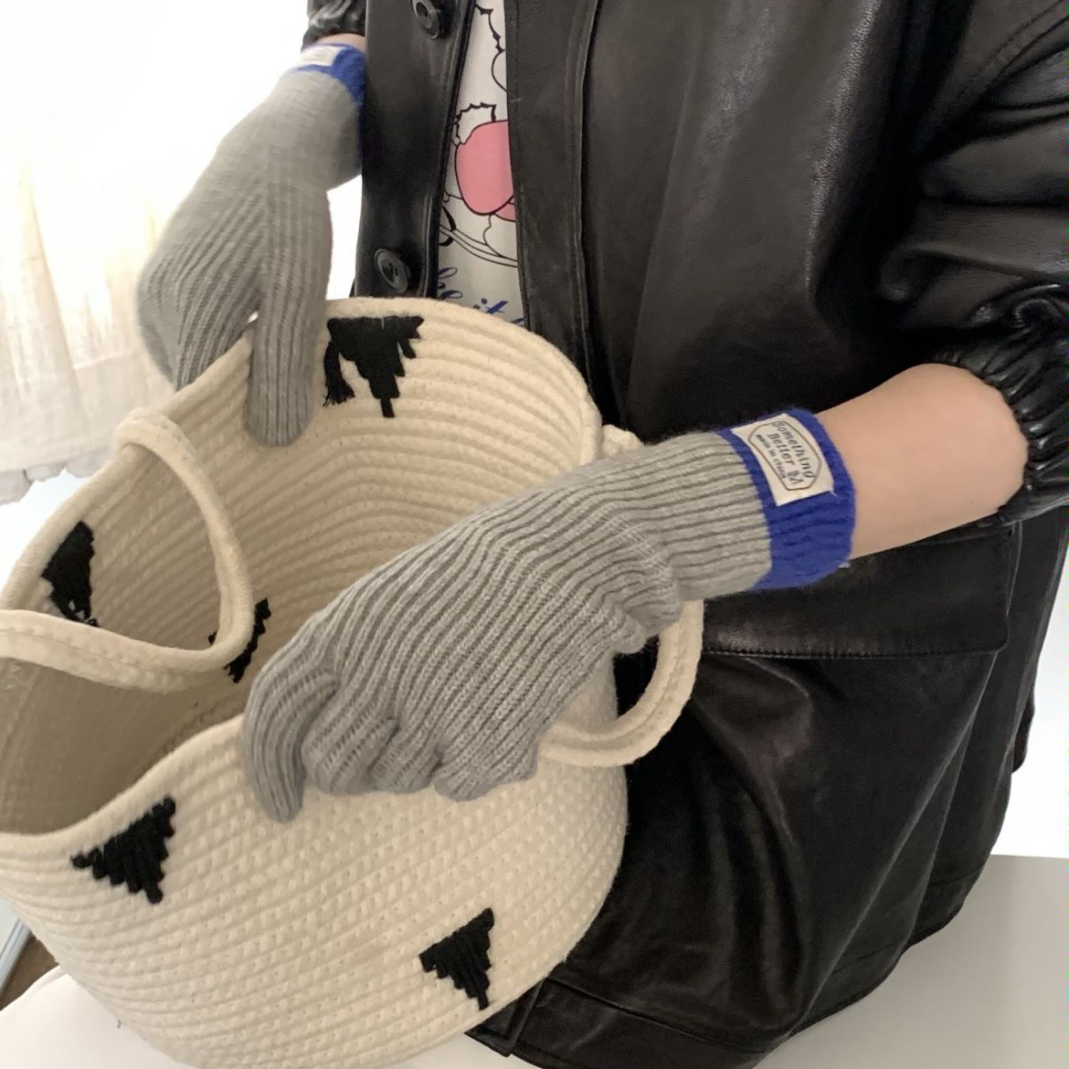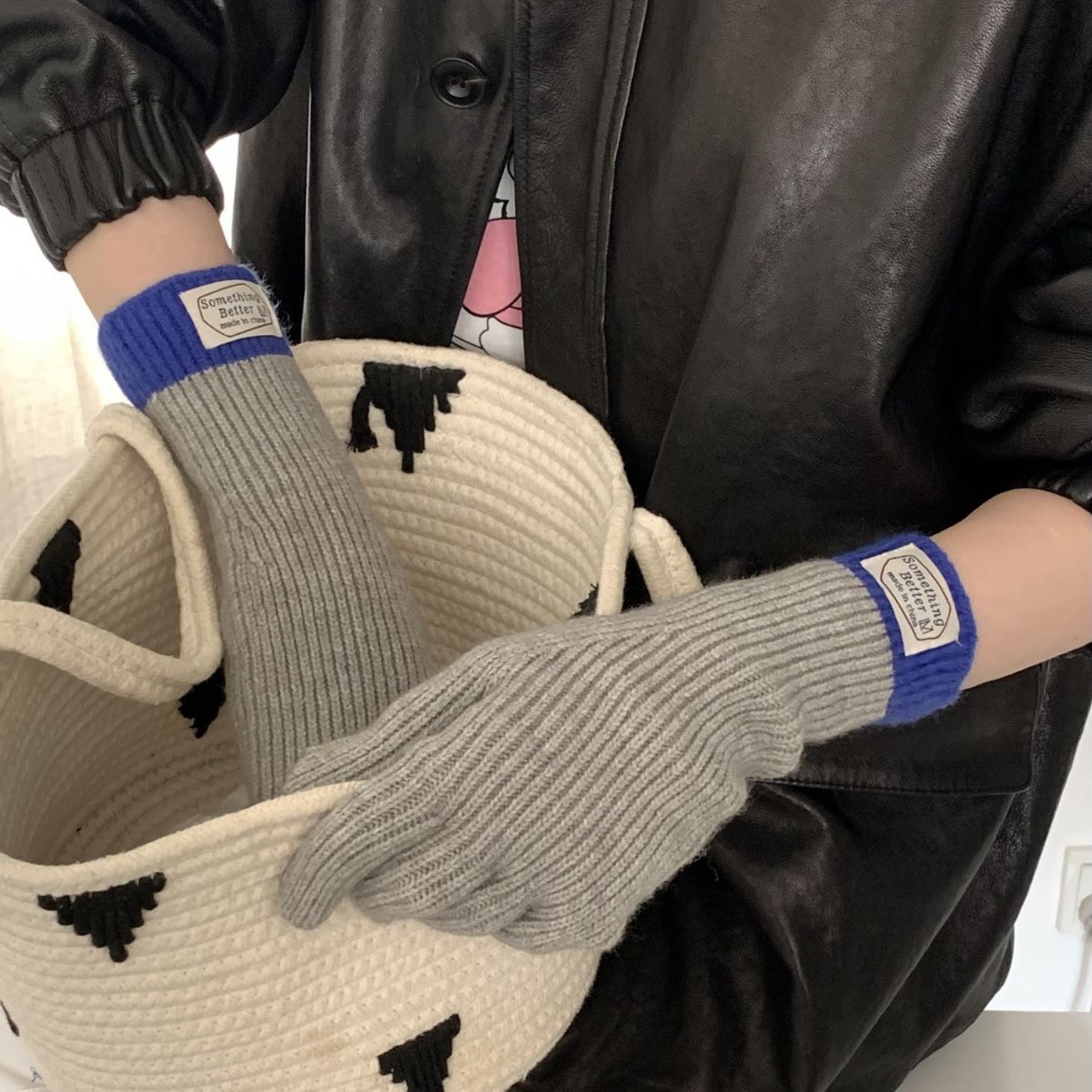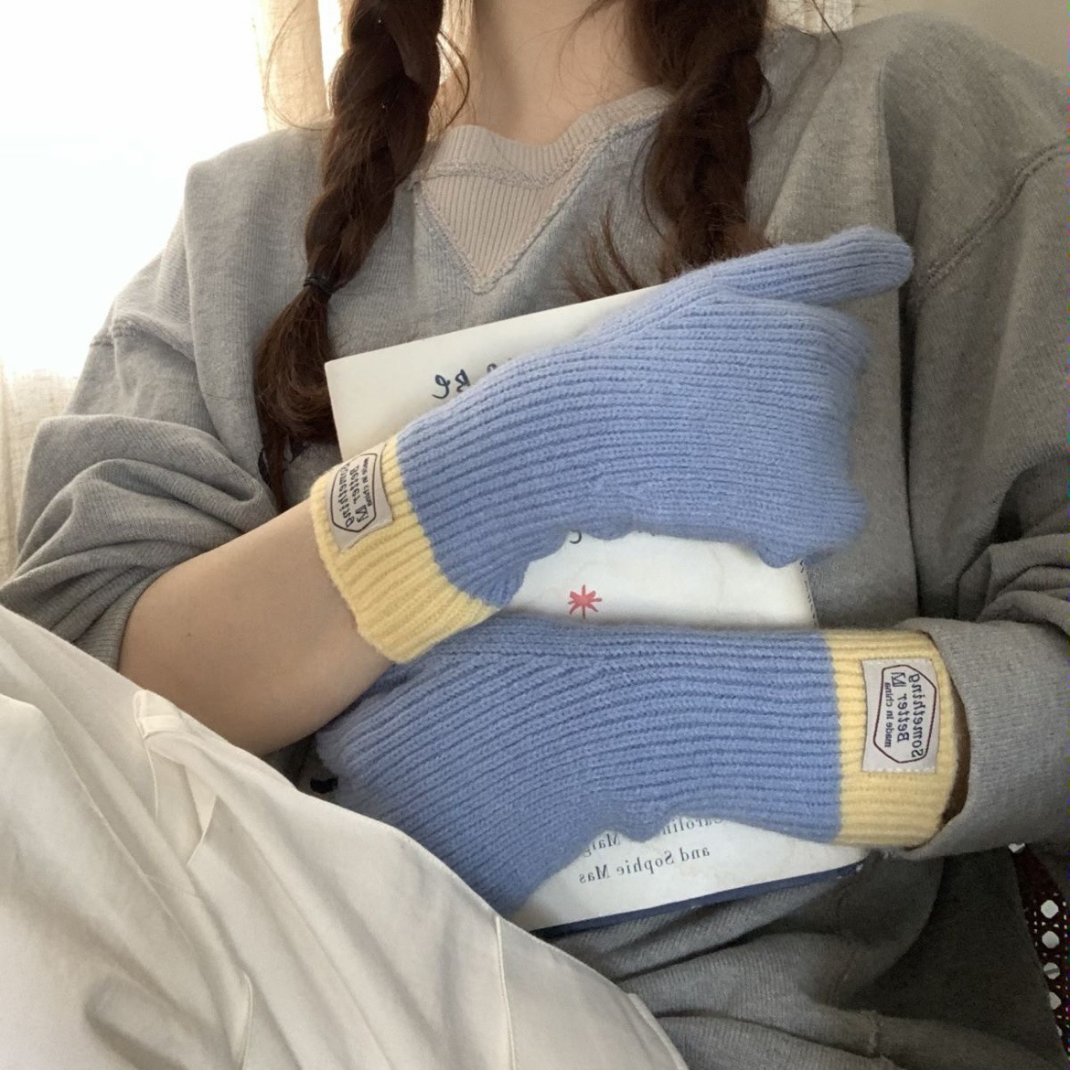 한국 컬러 매칭 터치 스크린 손가락 다섯 손가락 장갑 2023 새로운 가을과 겨울 따뜻한 여성의 색상 대비 블로거스토어 가기