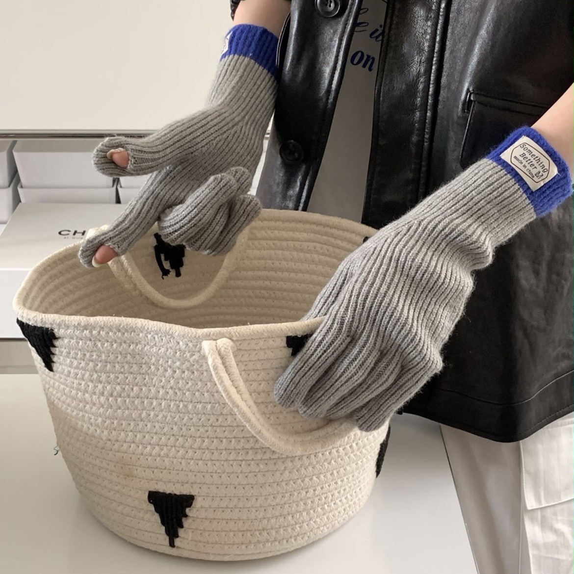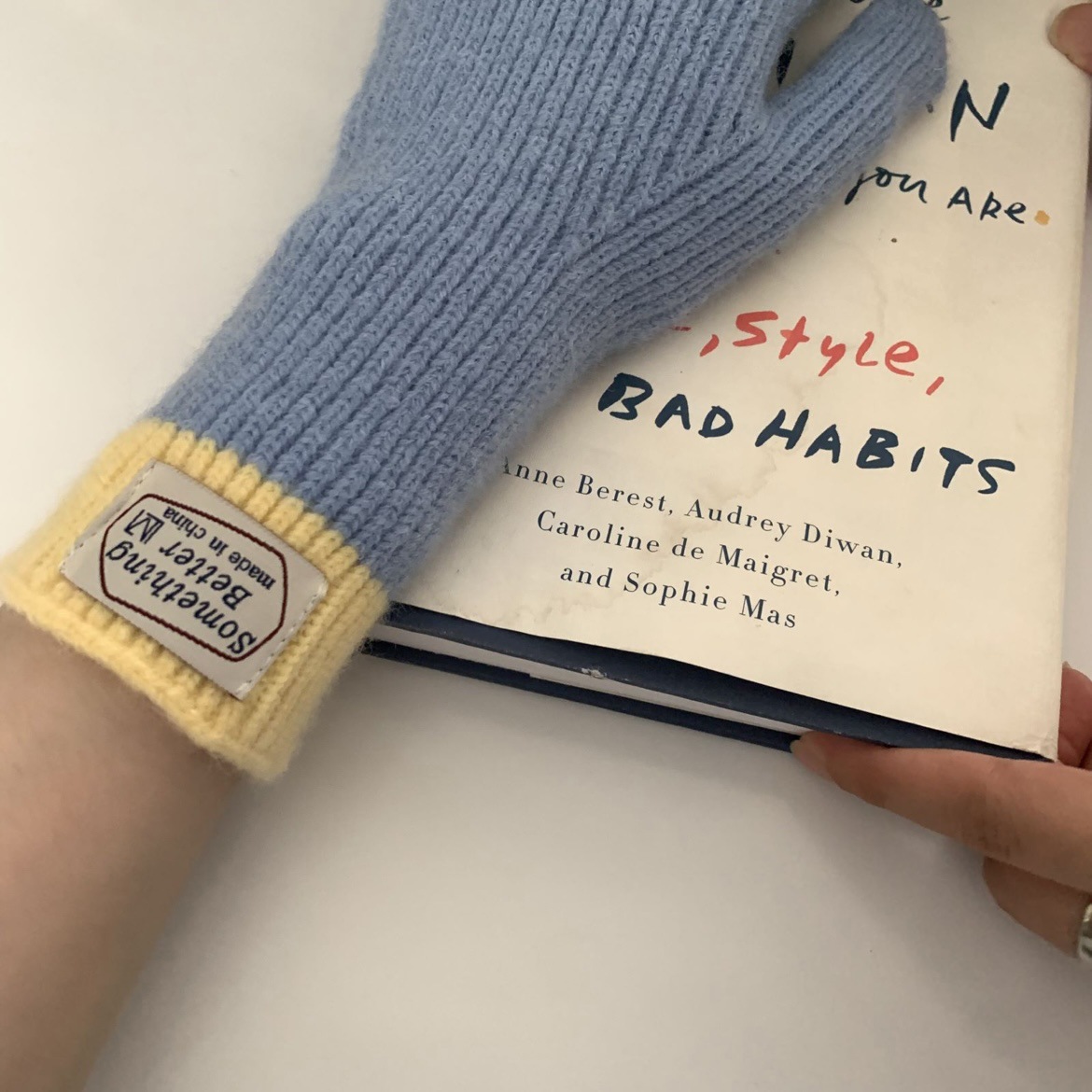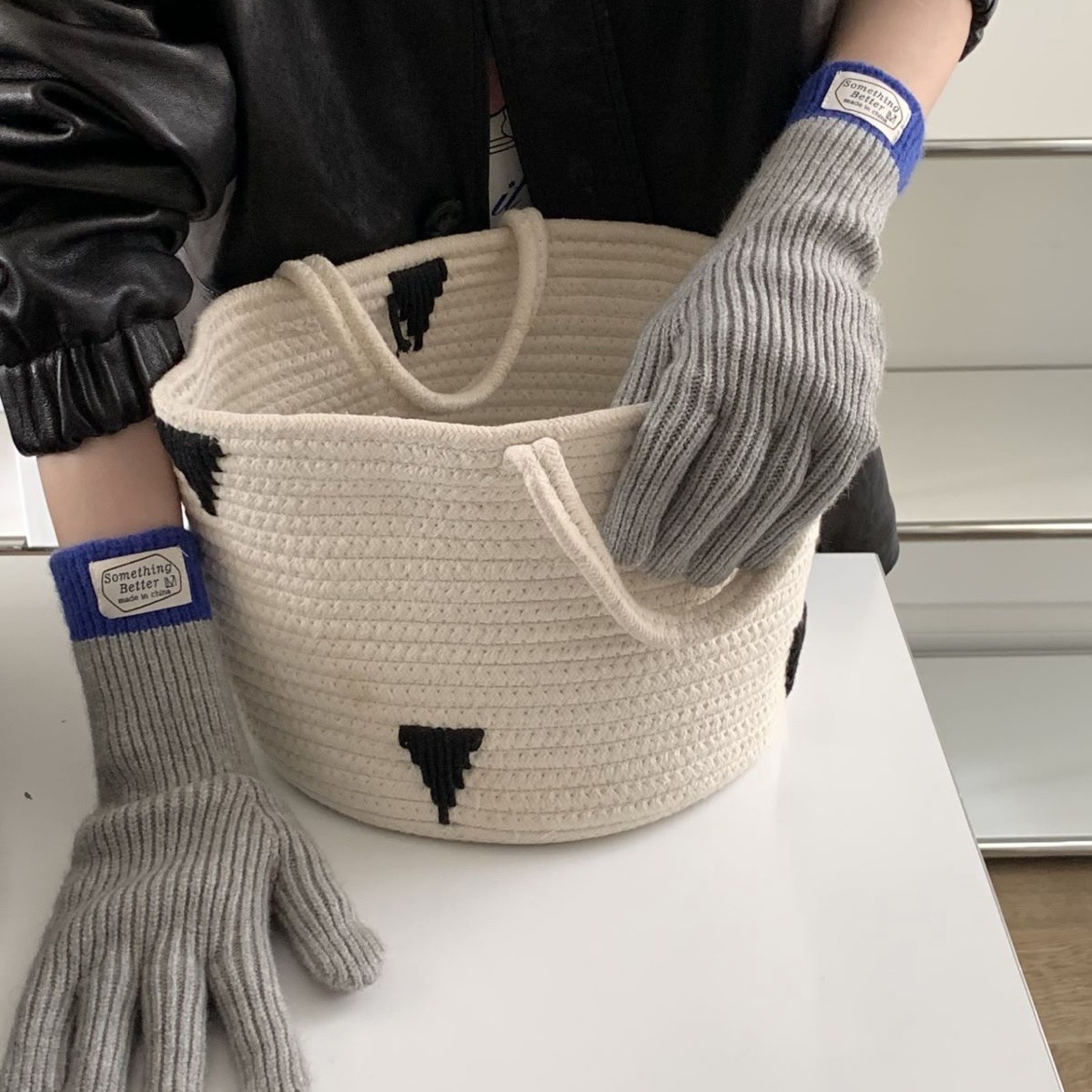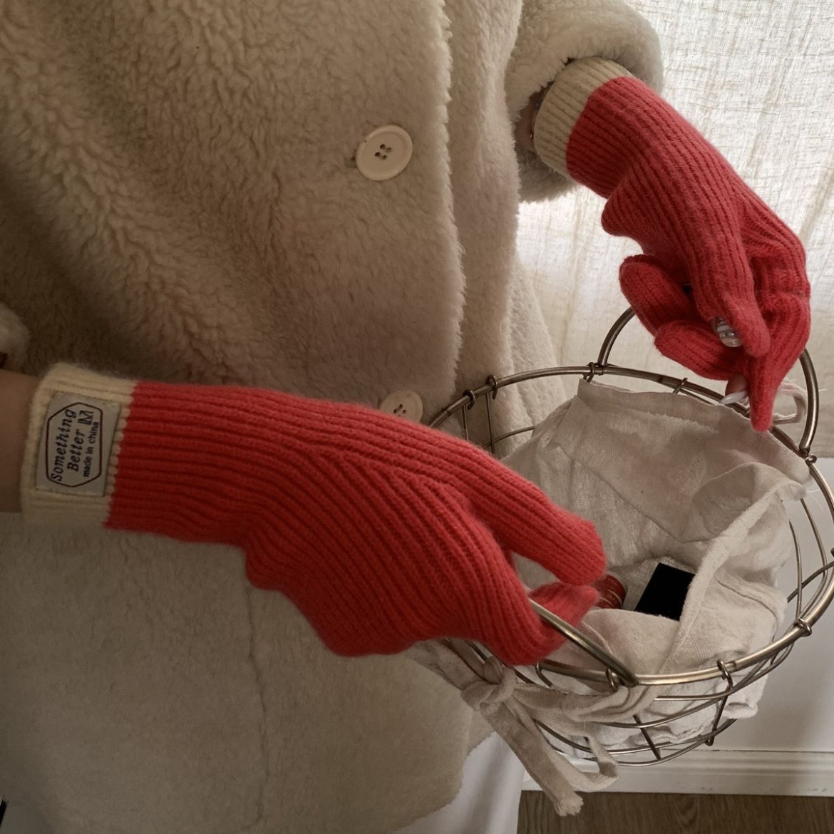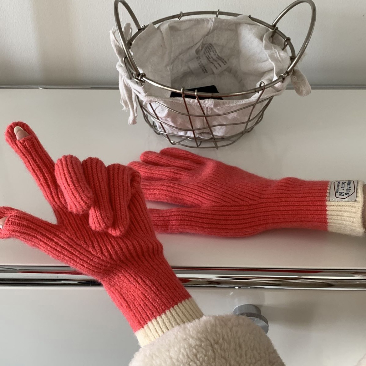 한국 컬러 매칭 터치 스크린 손가락 다섯 손가락 장갑 2023 새로운 가을과 겨울 따뜻한 여성의 색상 대비 블로거스토어 가기