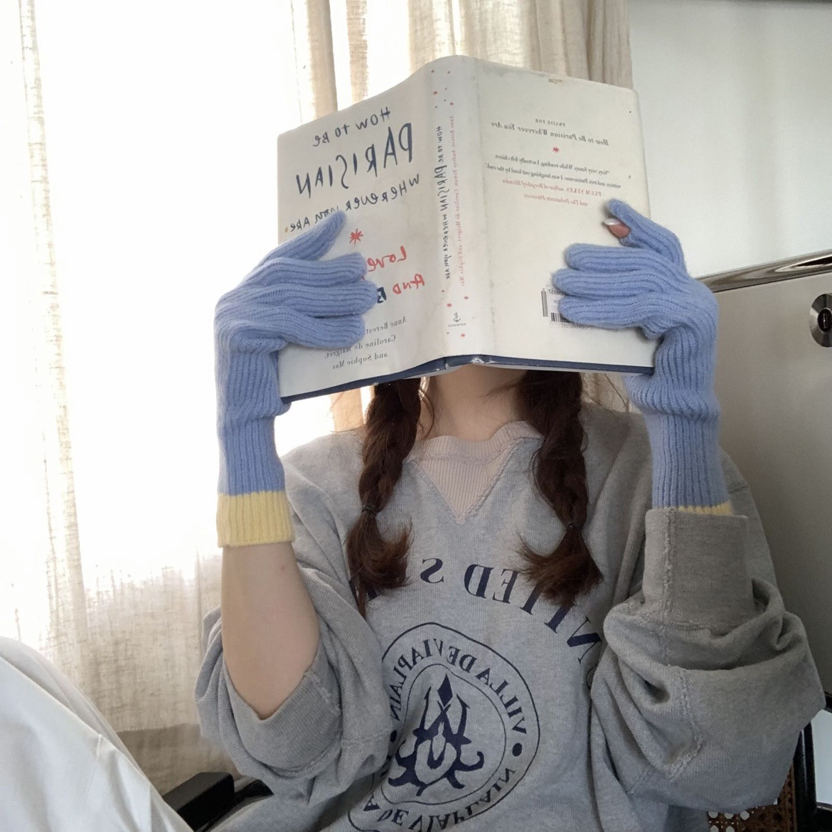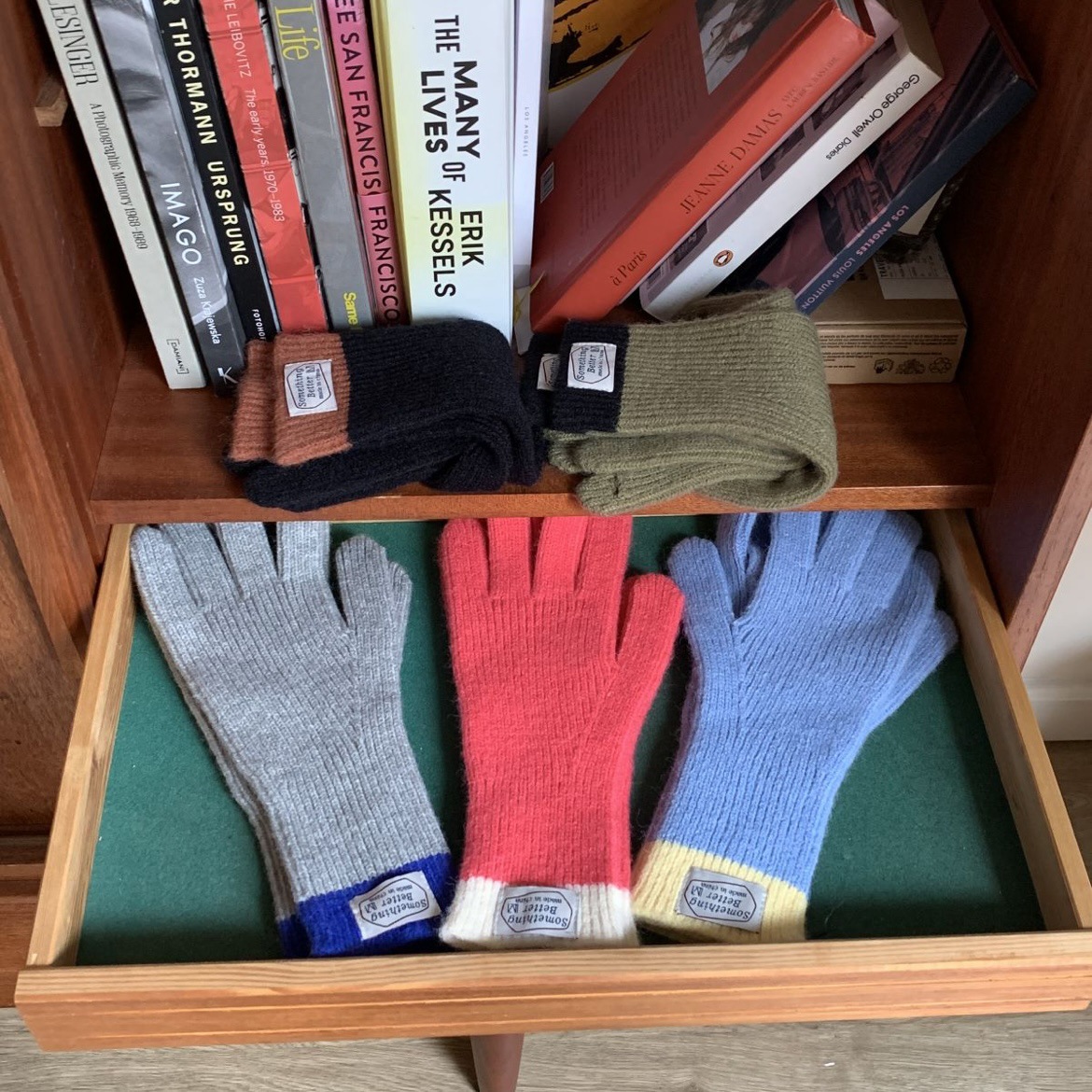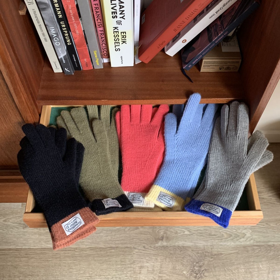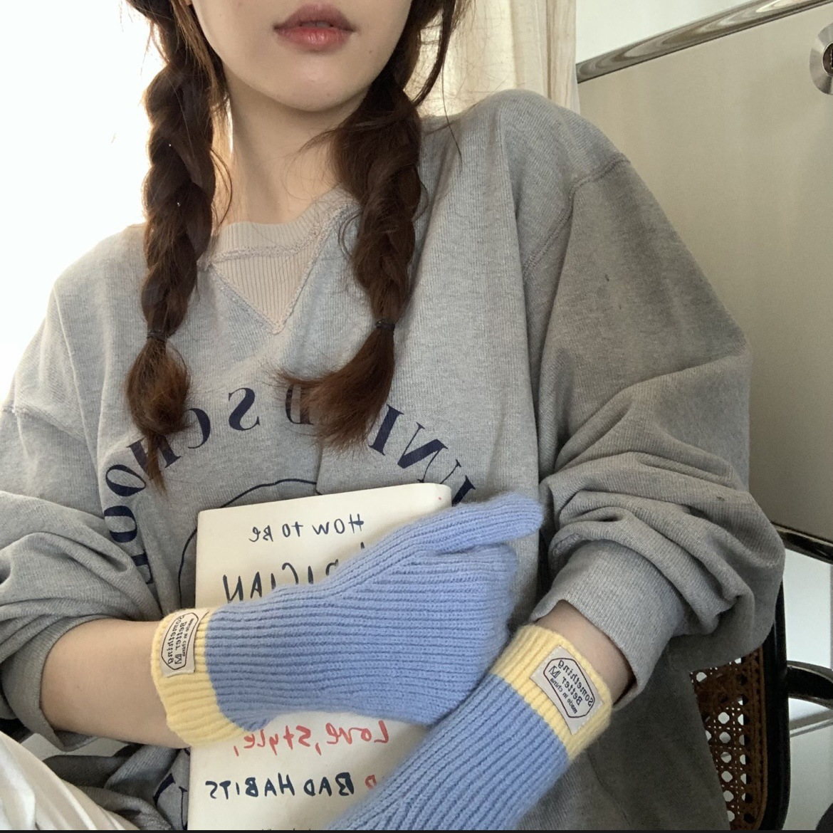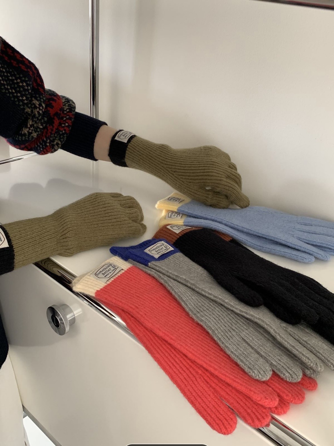 한국 컬러 매칭 터치 스크린 손가락 다섯 손가락 장갑 2023 새로운 가을과 겨울 따뜻한 여성의 색상 대비 블로거스토어 가기