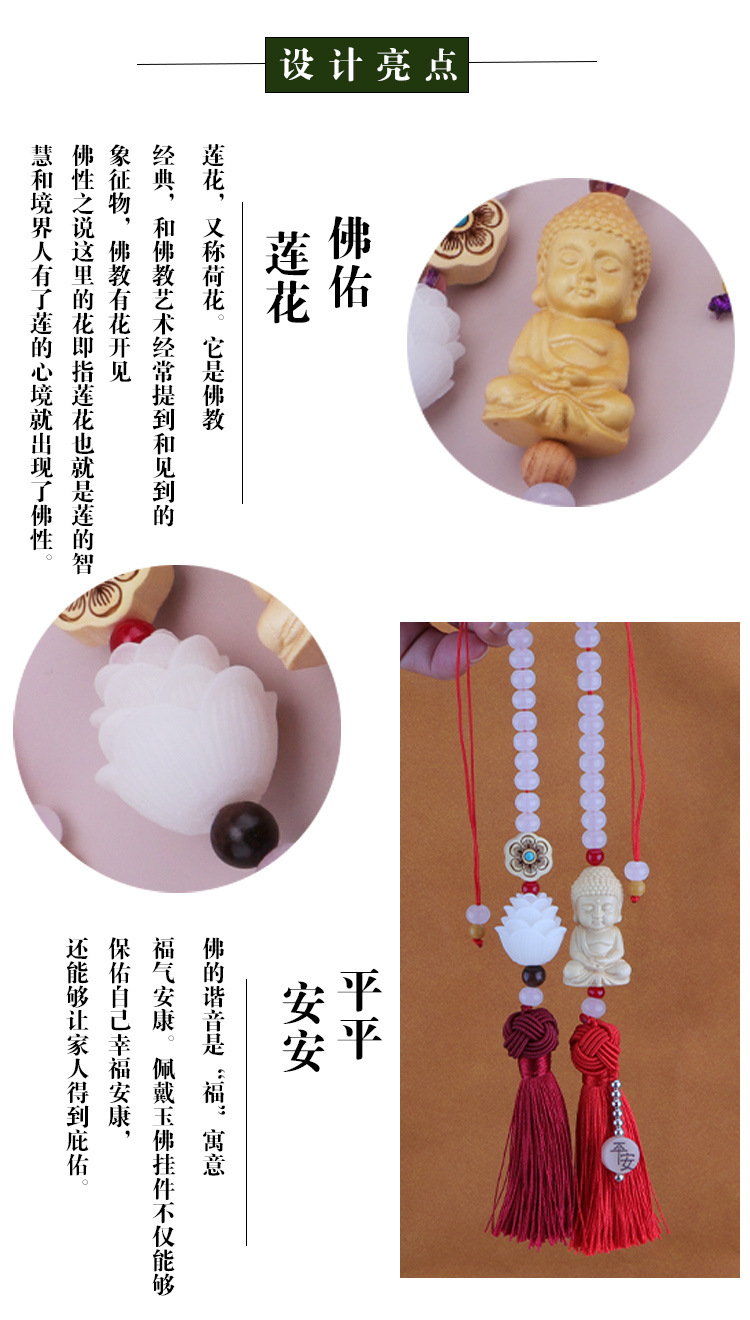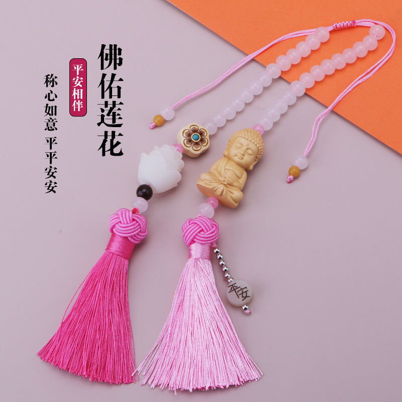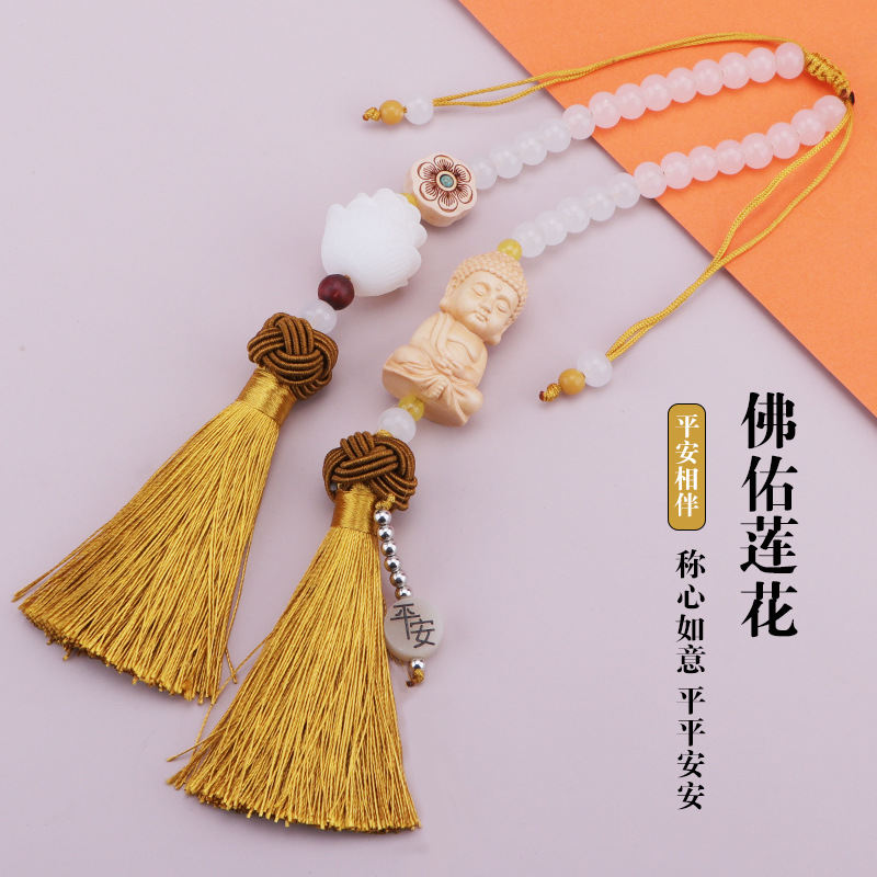 크리 에이 티브 회양목 부처 머리 자동차 펜던트 화이트 옥 보디 자동차 백미러 펜던트 사첼 렛 로터스 더블 이어 펜던트스토어 가기