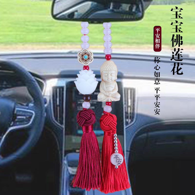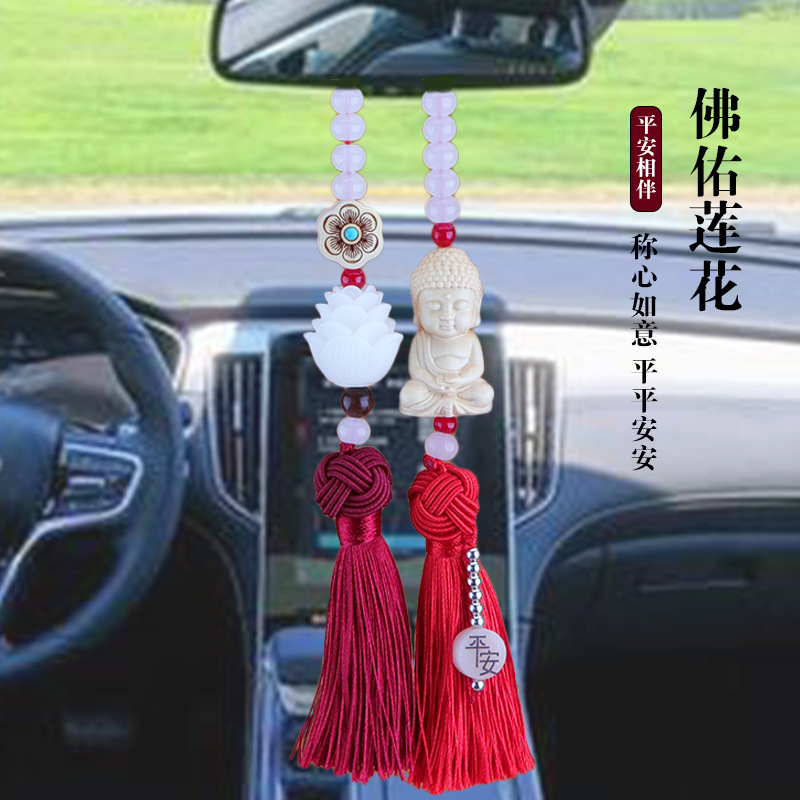 크리 에이 티브 회양목 부처 머리 자동차 펜던트 화이트 옥 보디 자동차 백미러 펜던트 사첼 렛 로터스 더블 이어 펜던트