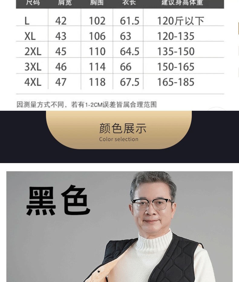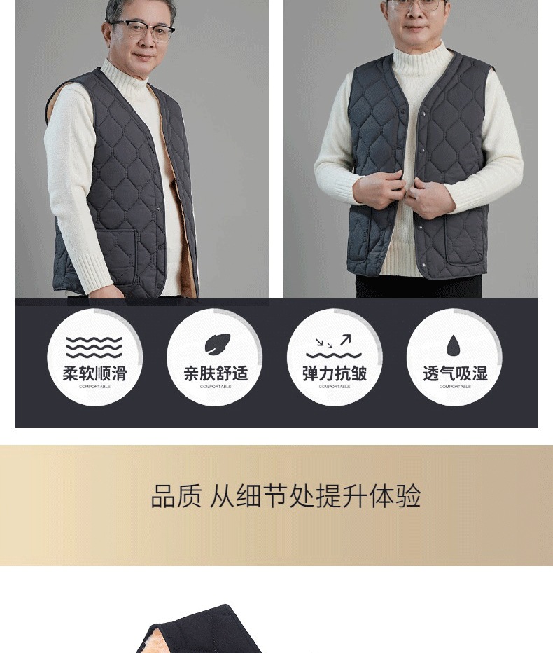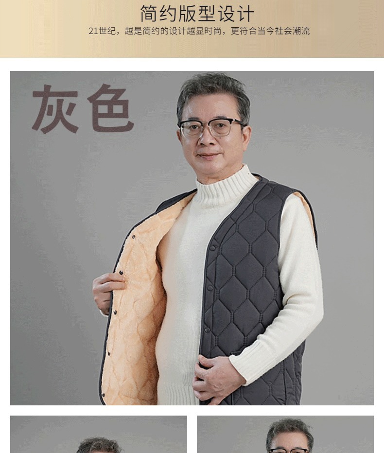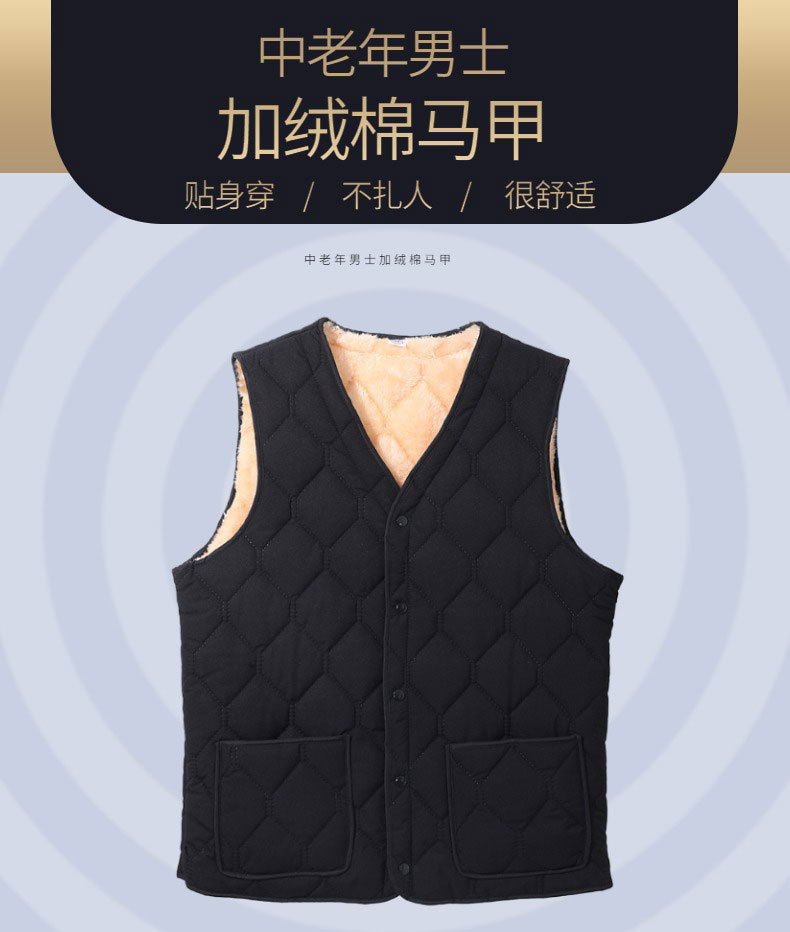 남성용 면 조끼, 기모 안감, 두꺼운 아빠옷, 중노년층 보온 조끼, 다용도 방한 입체 포켓스토어 가기