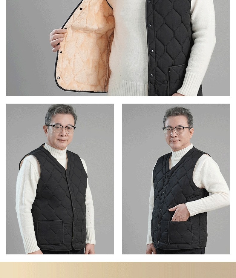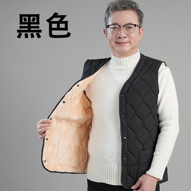 남성용 면 조끼, 기모 안감, 두꺼운 아빠옷, 중노년층 보온 조끼, 다용도 방한 입체 포켓