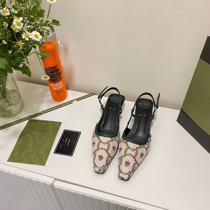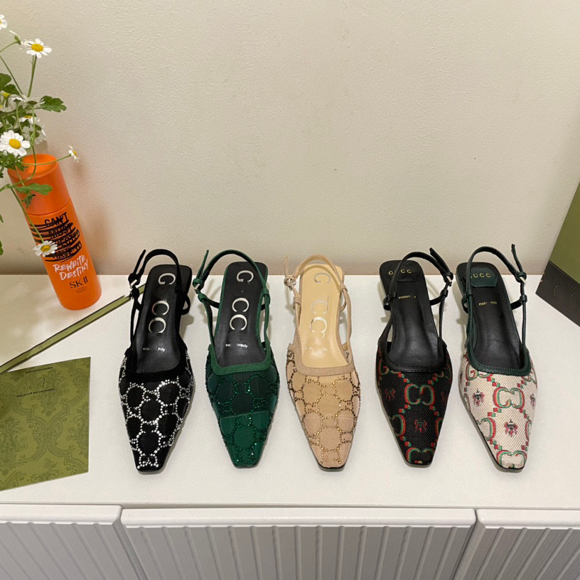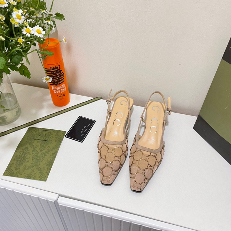 2022G 패밀리 봄과 여름 조커 새로운 핫 라인 석 고양이 힐 빈 샌들 여성용 메쉬 Baotou 미들 힐 샌들스토어 가기